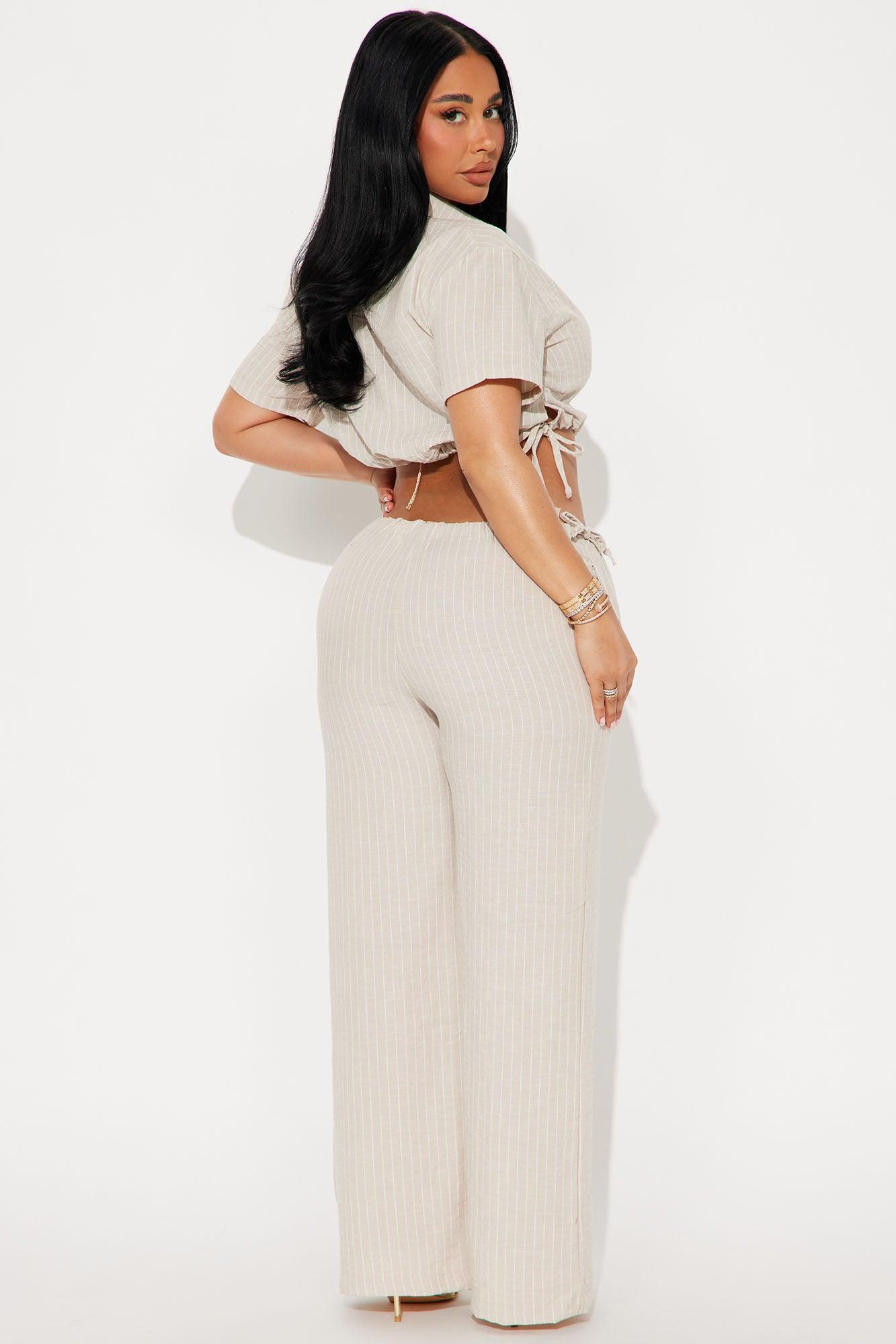Kimana Striped Linen Pant Set - Off White