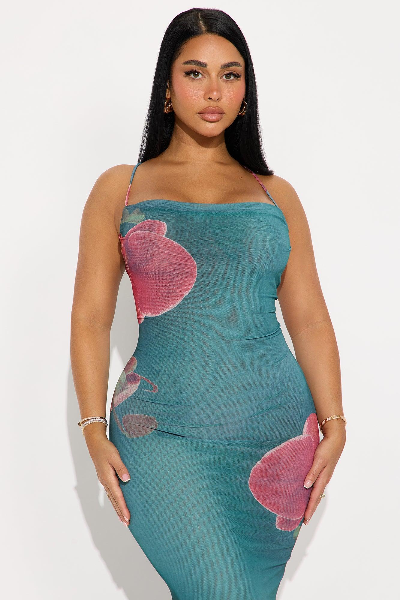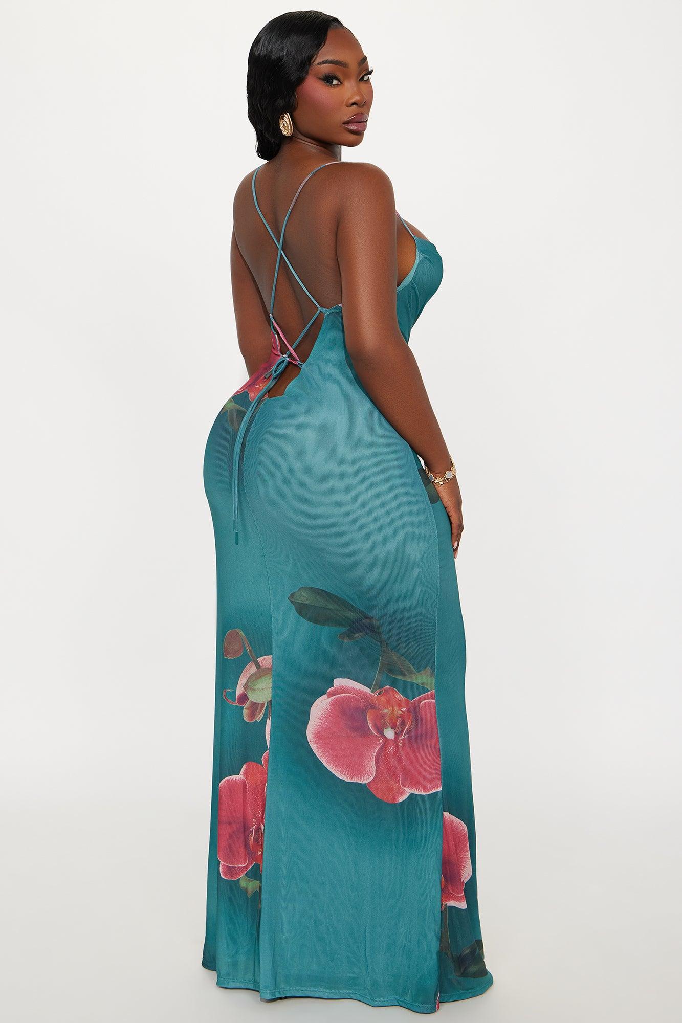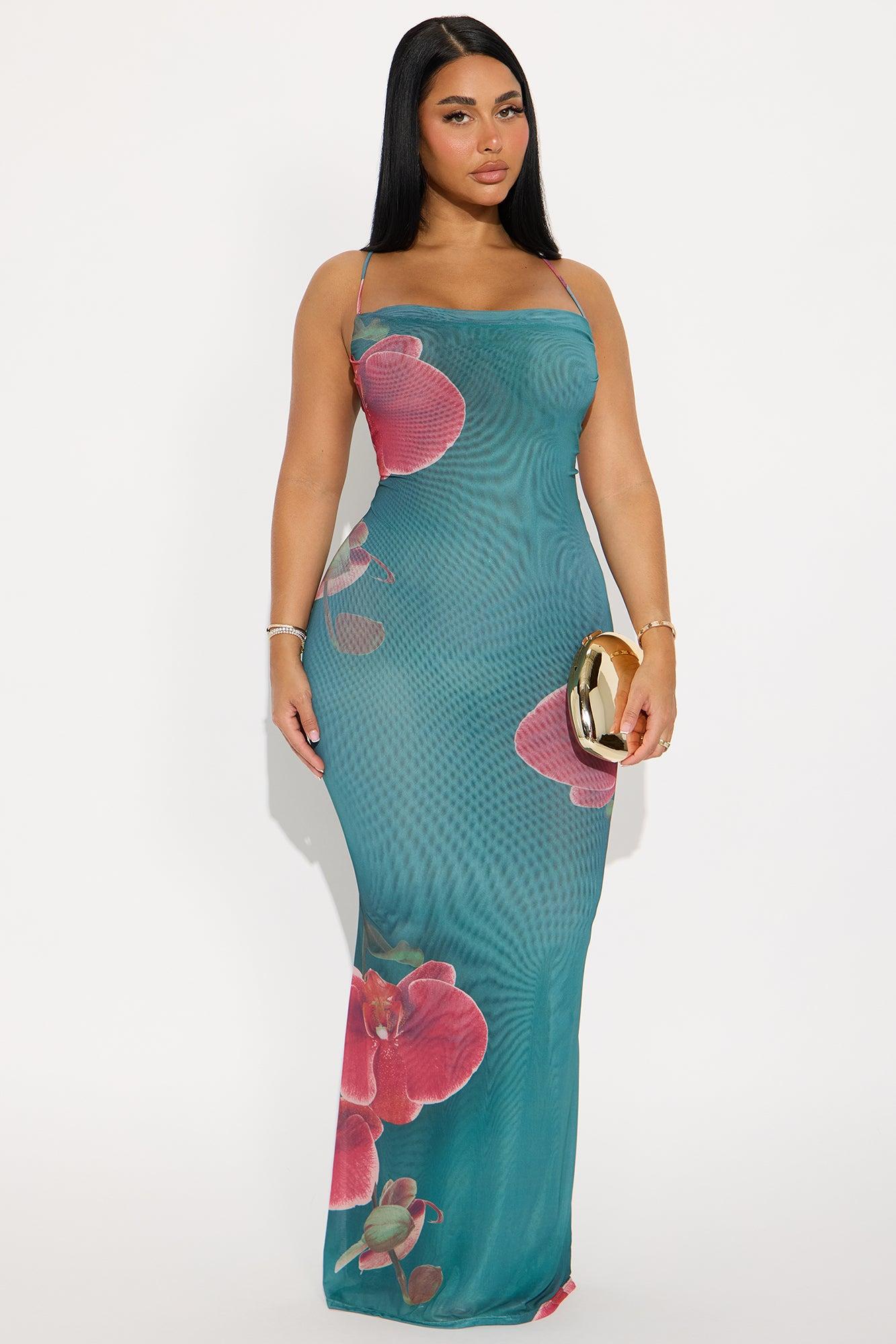 Kimberly Floral Mesh Maxi Dress - Teal/combo Female