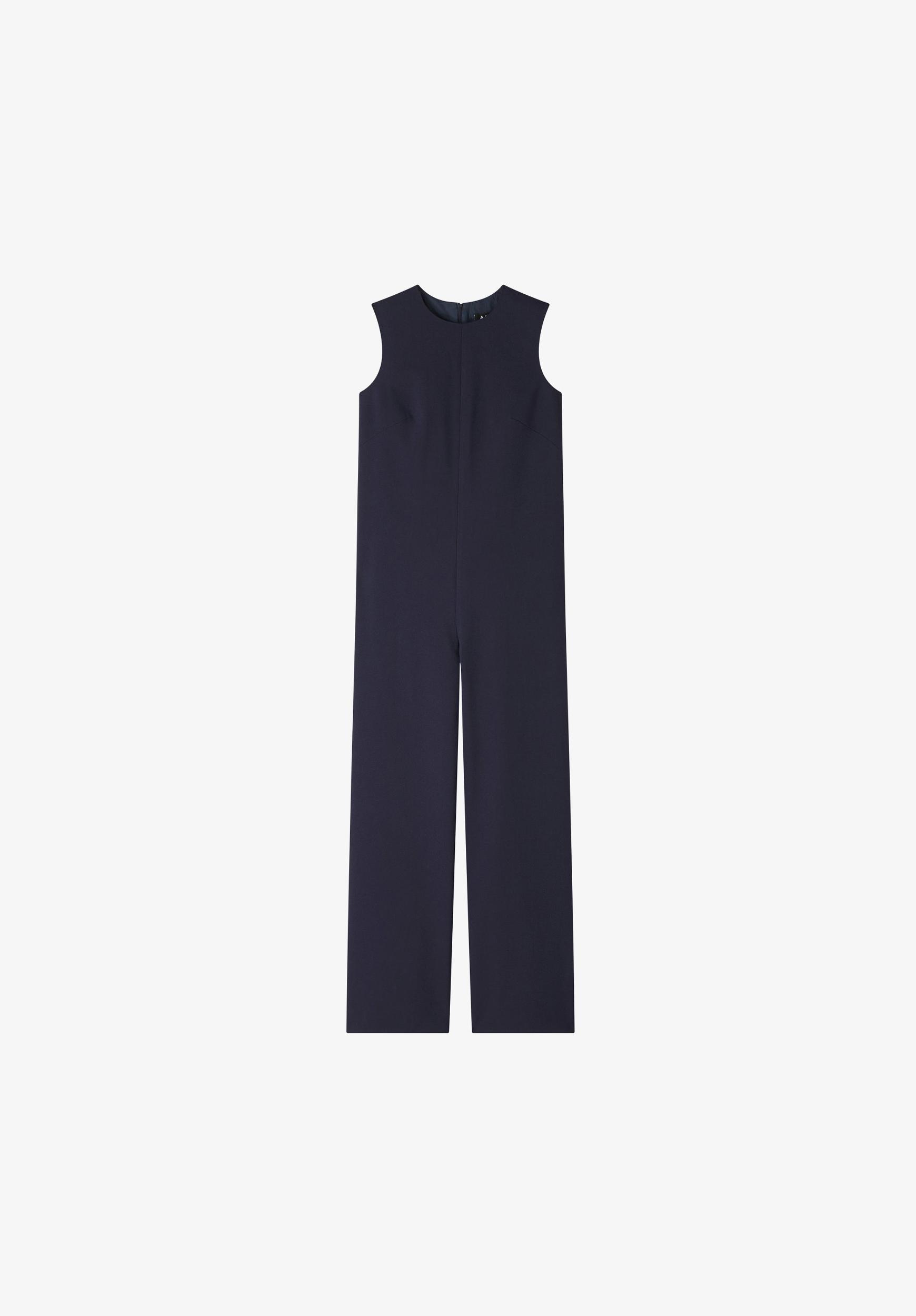 - Straight cut. - Round neck. - Wide and ample leg. - Invisible zip at back. - Pinched chest and back. - Made from 68% recycled material and 29% strong, breathable viscose from certified sustainable forests.