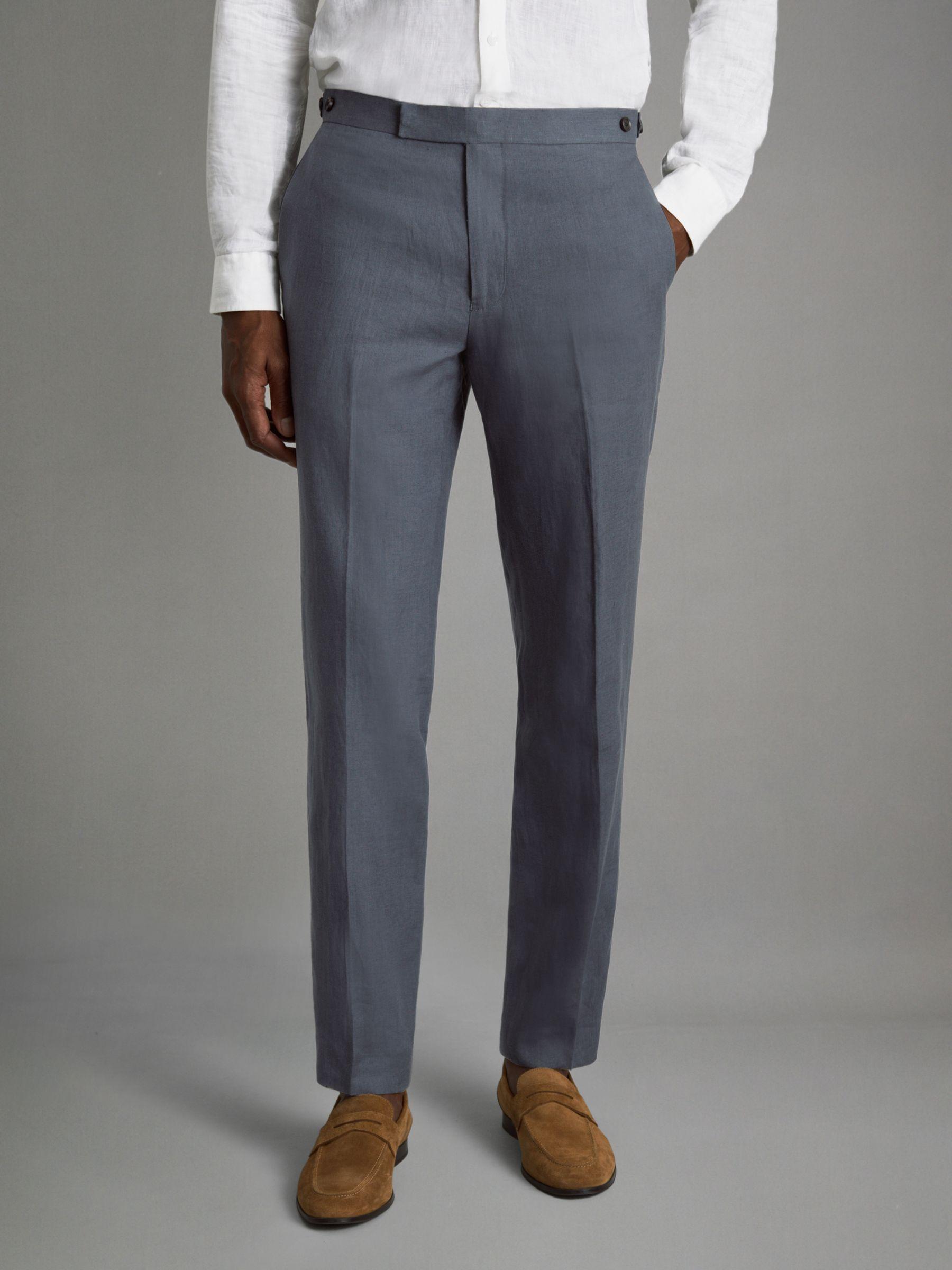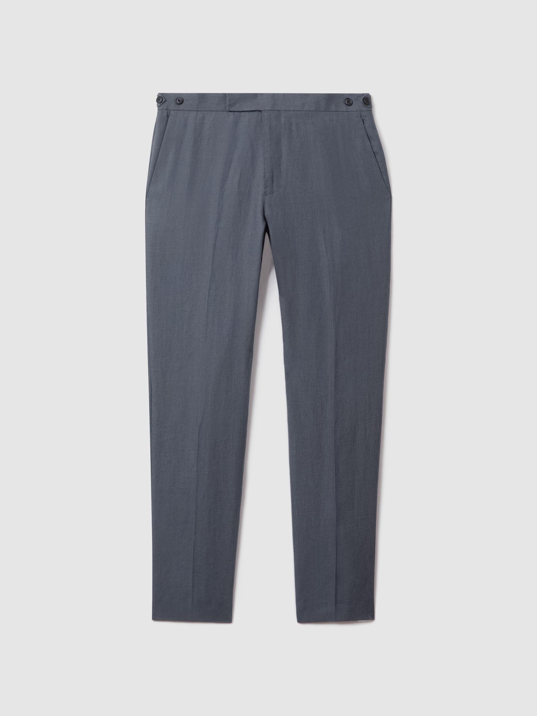 Kin Airforce Blue Slim Fit 100% Linen Adjuster Trousers