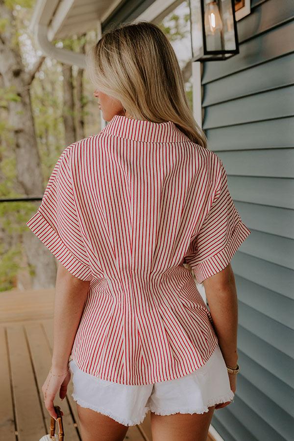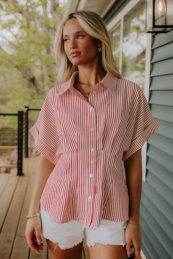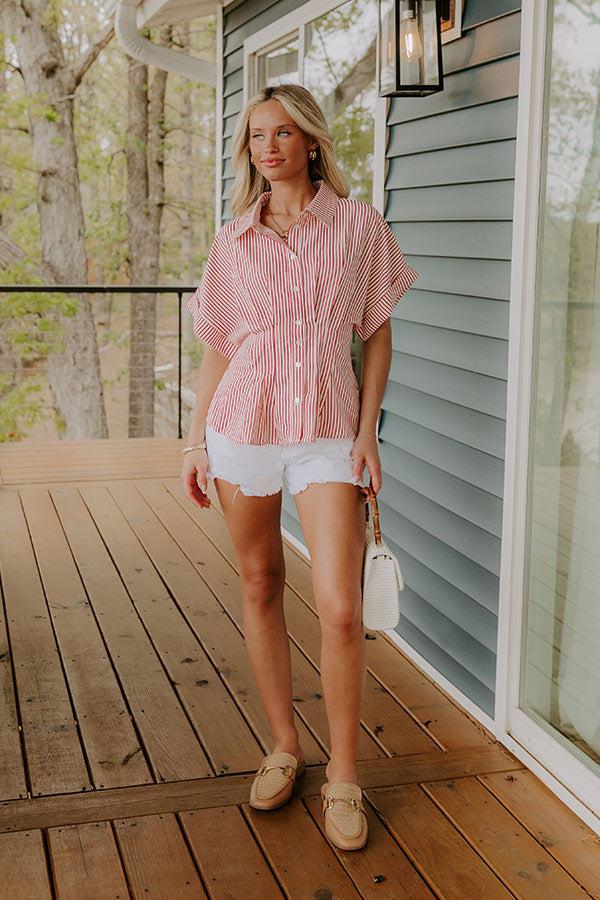 - This button-up is all about those little details that make a stylish impression! The trendy pleats add the cutest touch, giving it a chic twist. It's perfect for any day you want to feel extra fabulous! - Unlined seersucker material with a striped pattern - A collared neckline - A button up front - Short sleeves with rolled cuffs - A relaxed silhouette that ends in a pleated hemline