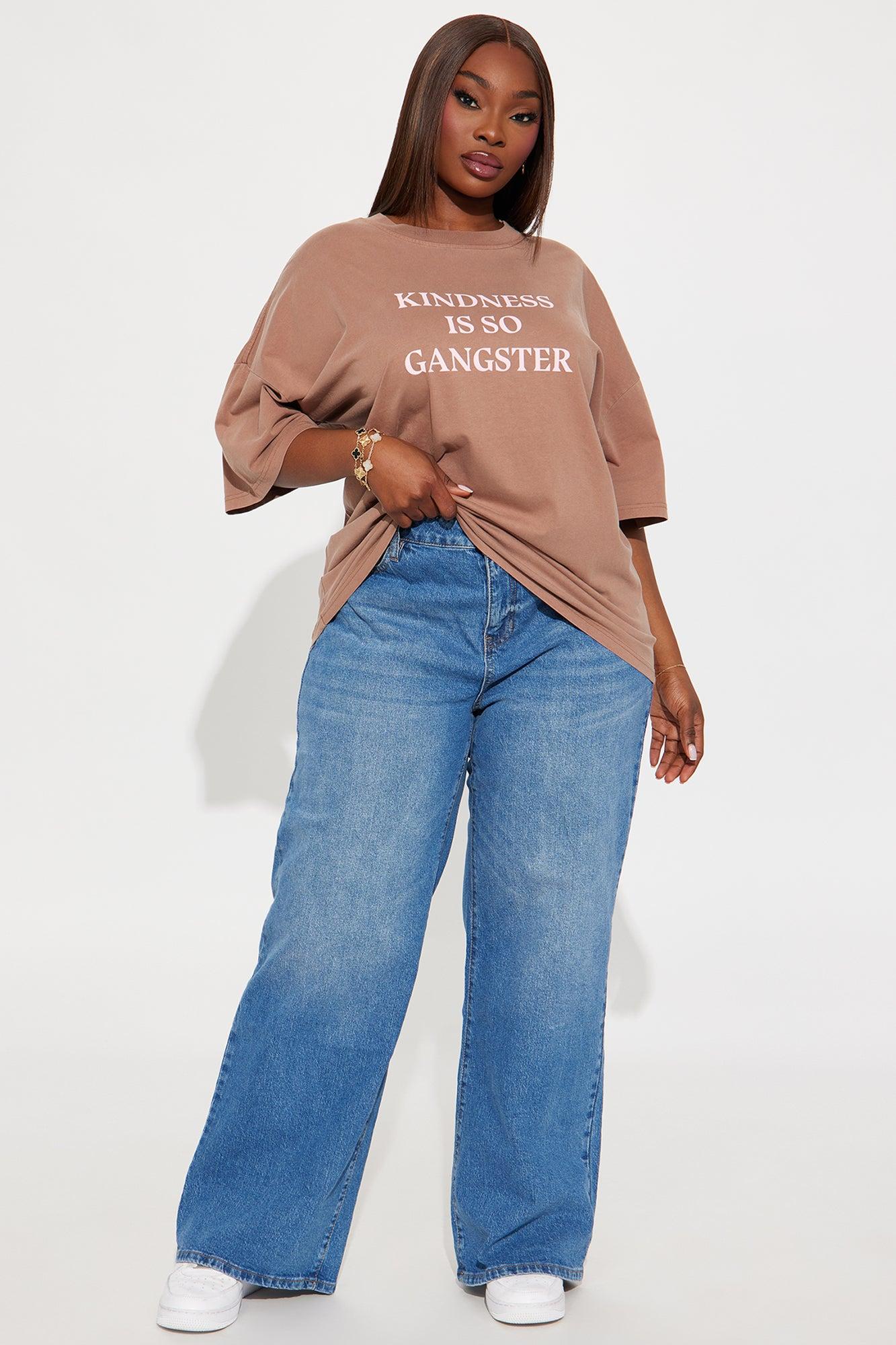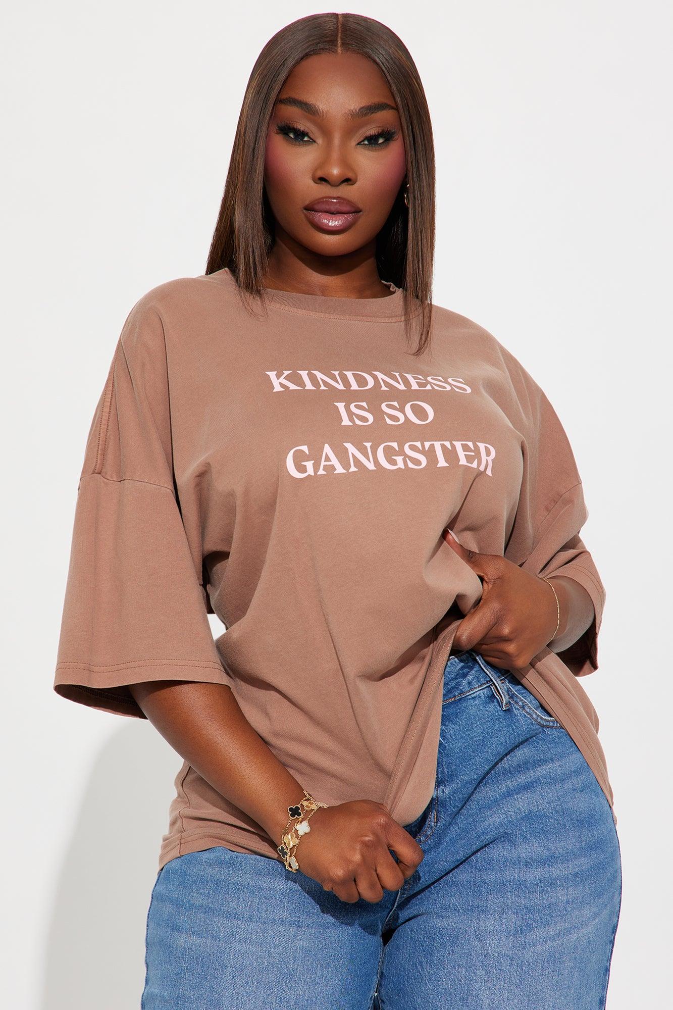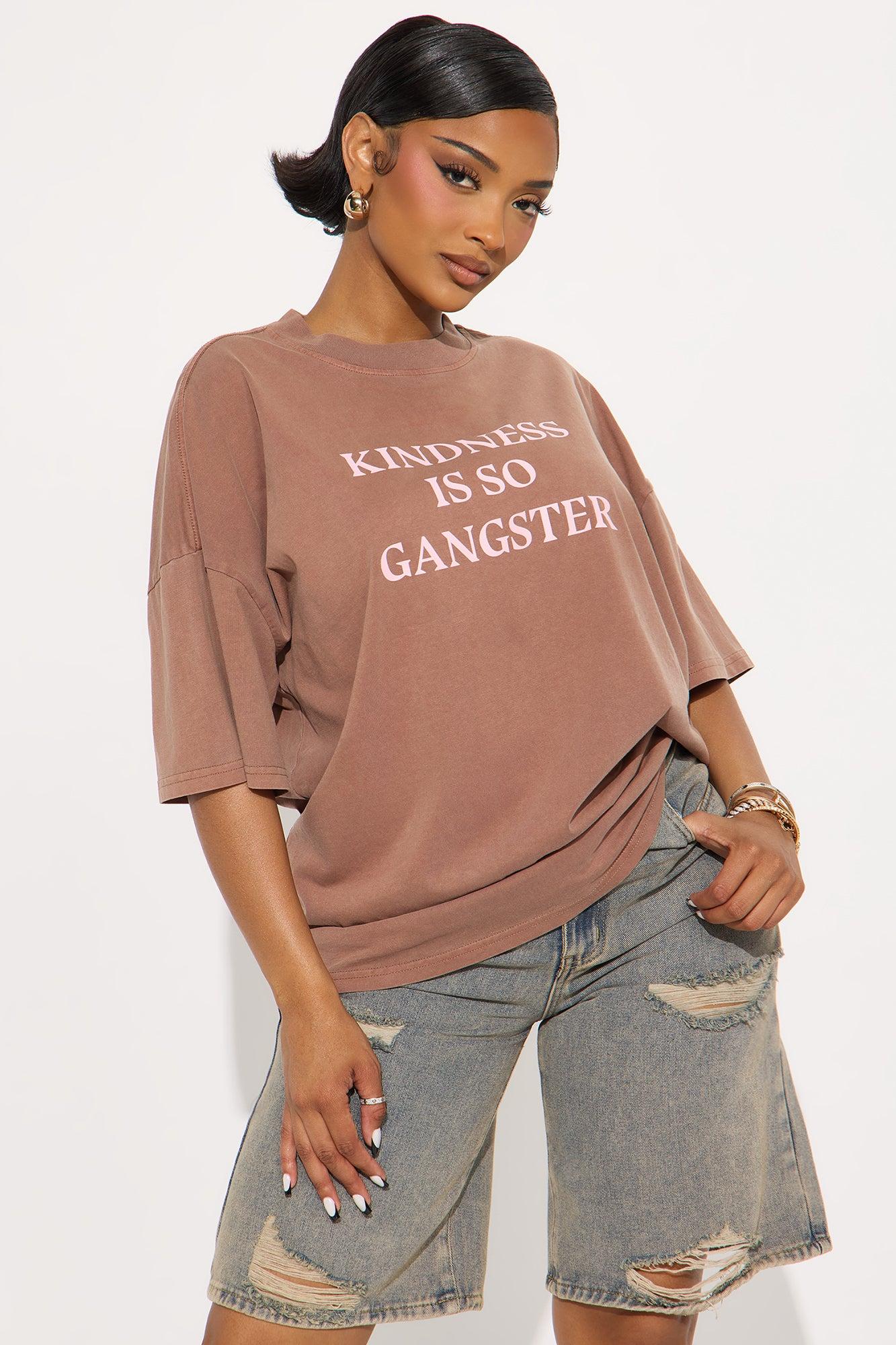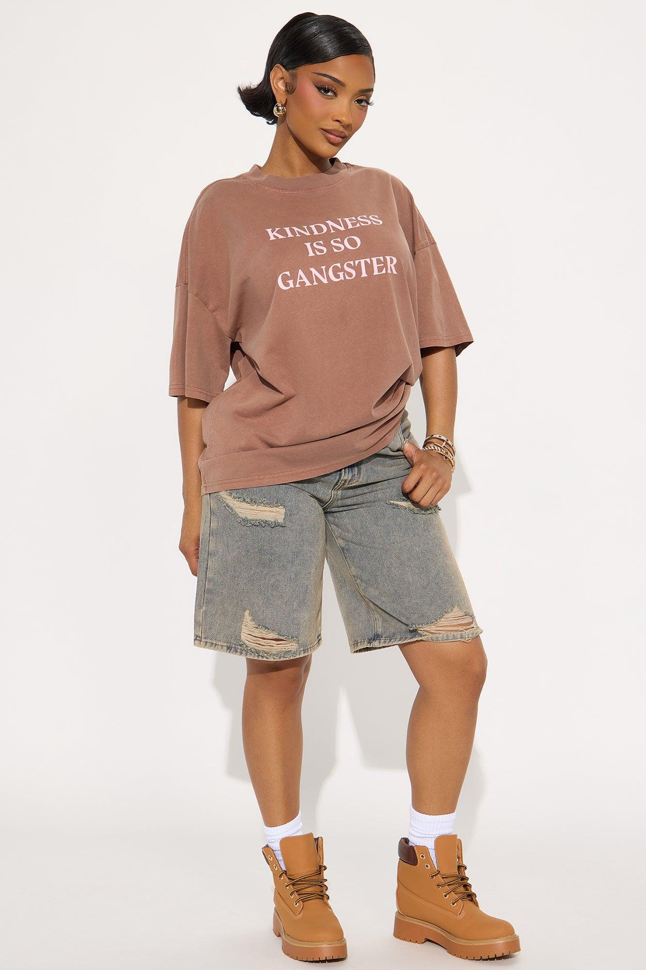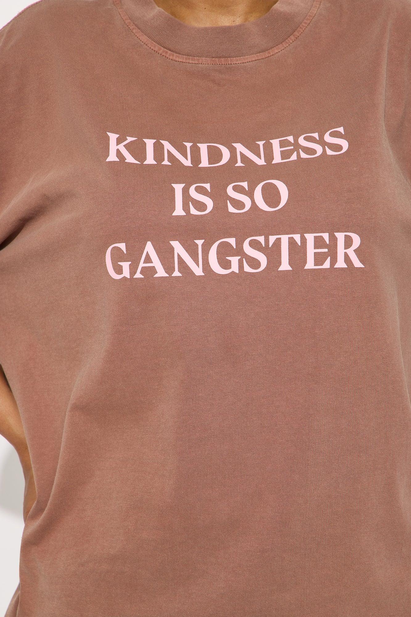 Kindness Is So Gangsta Washed Boxy Tee - Brown Female