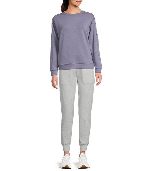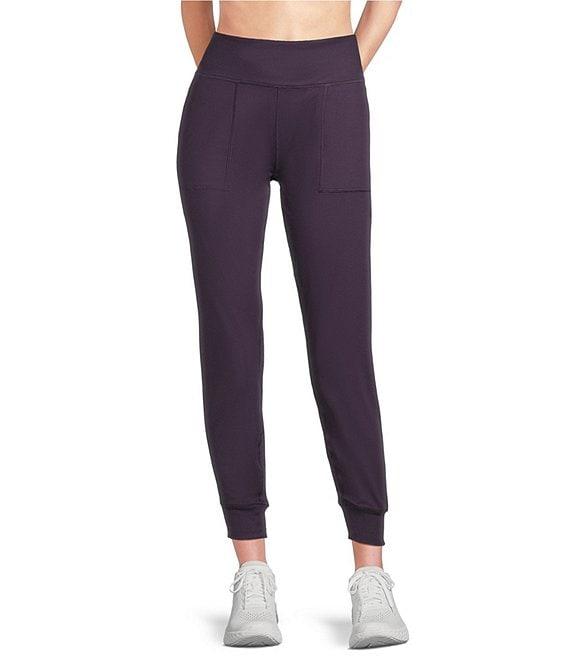 From Kinesis, these joggers feature: super-soft suede jersey fabrication slim jogger silhouette folded rib waistband Two front pockets Moisture-wicking pull-on construction Approx. 28" inseam Polyester/spandex Machine wash/tumble dry Imported.