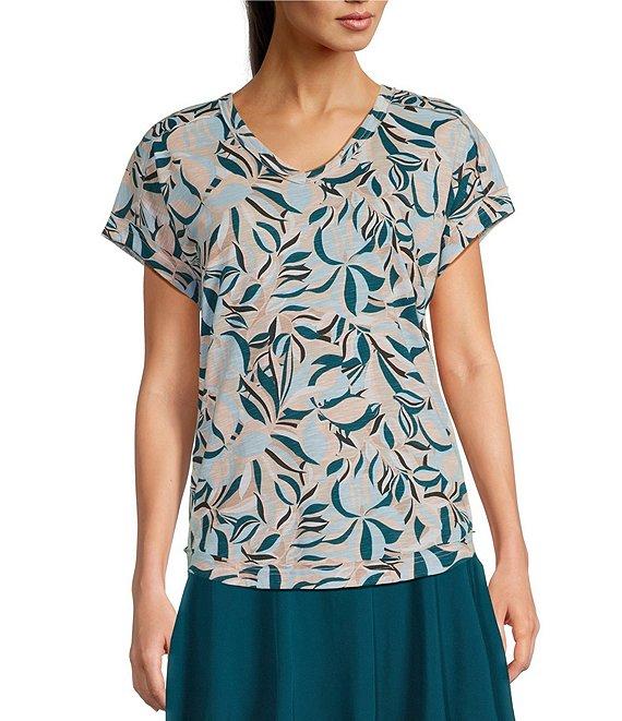 Kinesis Printed V-Neck Raw Edge Dolman Tee