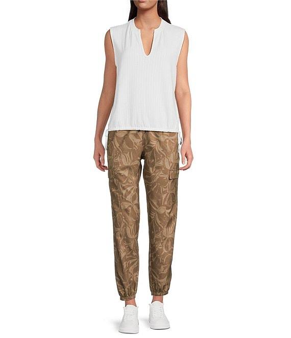 Kinesis Printed Woven Elastic Cinched Cuff Ribbed Waistband Flap Pocket Ankle Joggers