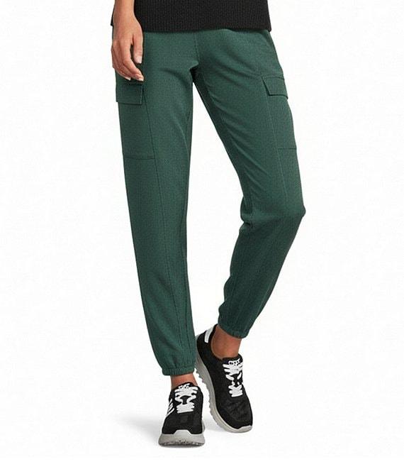Kinesis Woven Elastic Cinched Cuff Ribbed Waistband Flap Pocket Ankle Joggers