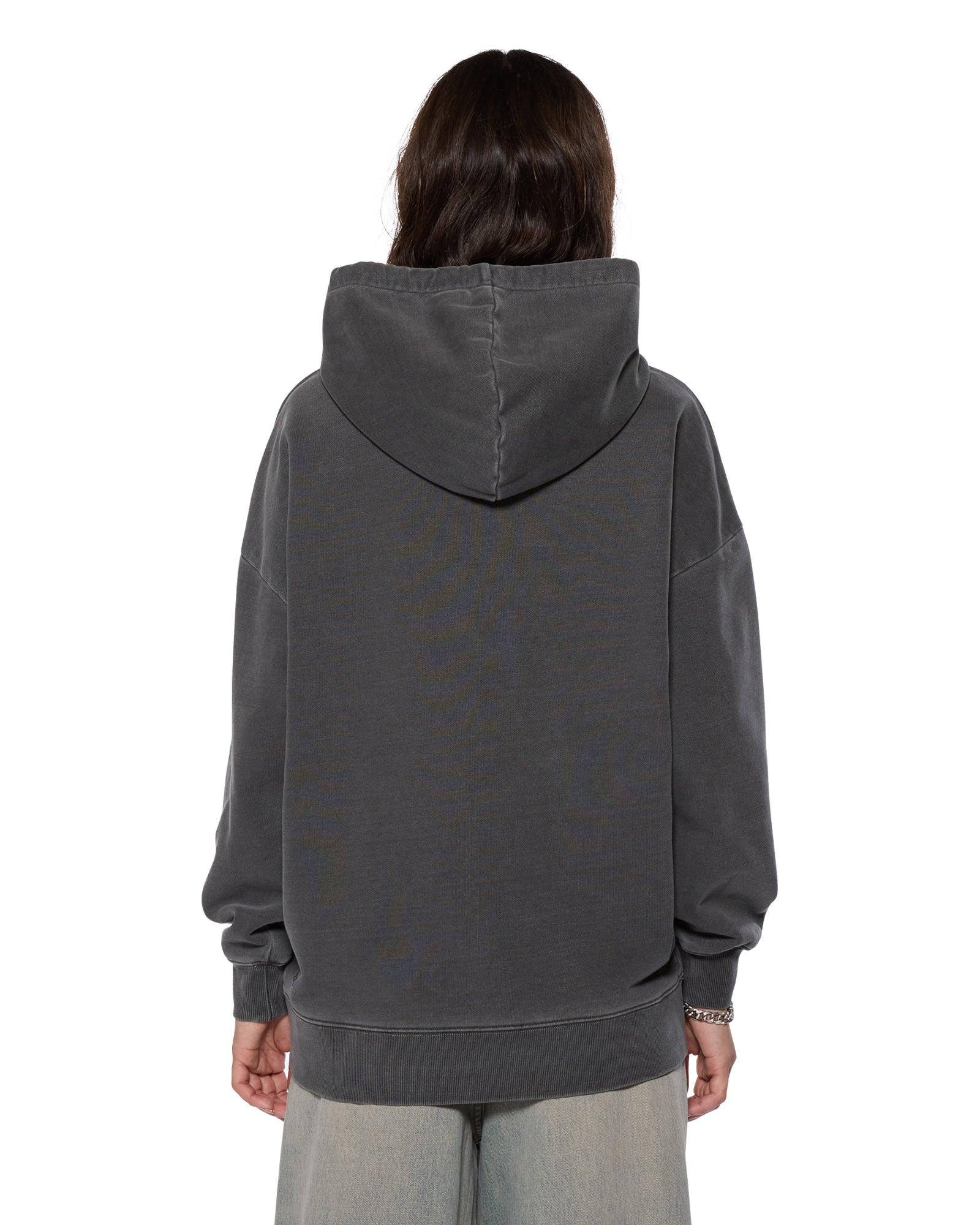 The Kingdom OH G Hoodie in Charcoal offers an oversized fit with a dropped shoulder and long sleeves, featuring ribbed cuffs and hem band, and a front pouch pocket. Made from premium loopback cotton fleece in washed charcoal for a vintage handfeel, it features exclusive Ksubi graphic art on the front and T-box embroidery on the back.