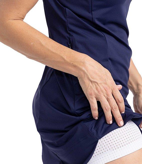 From Kinona, this dress features:Mini mock necklineSleevelessPrincess seamsIn-seam zip closure pockets with built-in tee holderMesh shorts with leg grippers and a ball pocketMoisture wickingAnti microbial4-way stretchUPF 50+Scalloped hemPull-on constructionPartial back zip closureApprox. 33.5" in lengthNylon/lycraMachine wash/tumble dryImported.