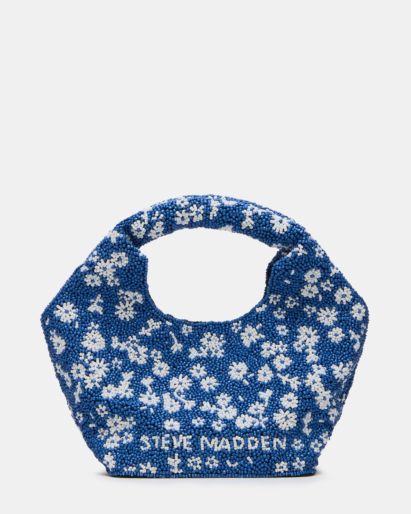 This KINSLEY mini beaded bag features a beaded design with a Steve Madden logo. It has a versatile design that can fit most phones. Stay stylish and organized with this trendy accessory. Beaded mini bag Tubular straps Mag snap closure Strap drop: 3.75 inches 8in H x 5in W 4in D Beaded textile materials Duster bag included Hand beaded Imported