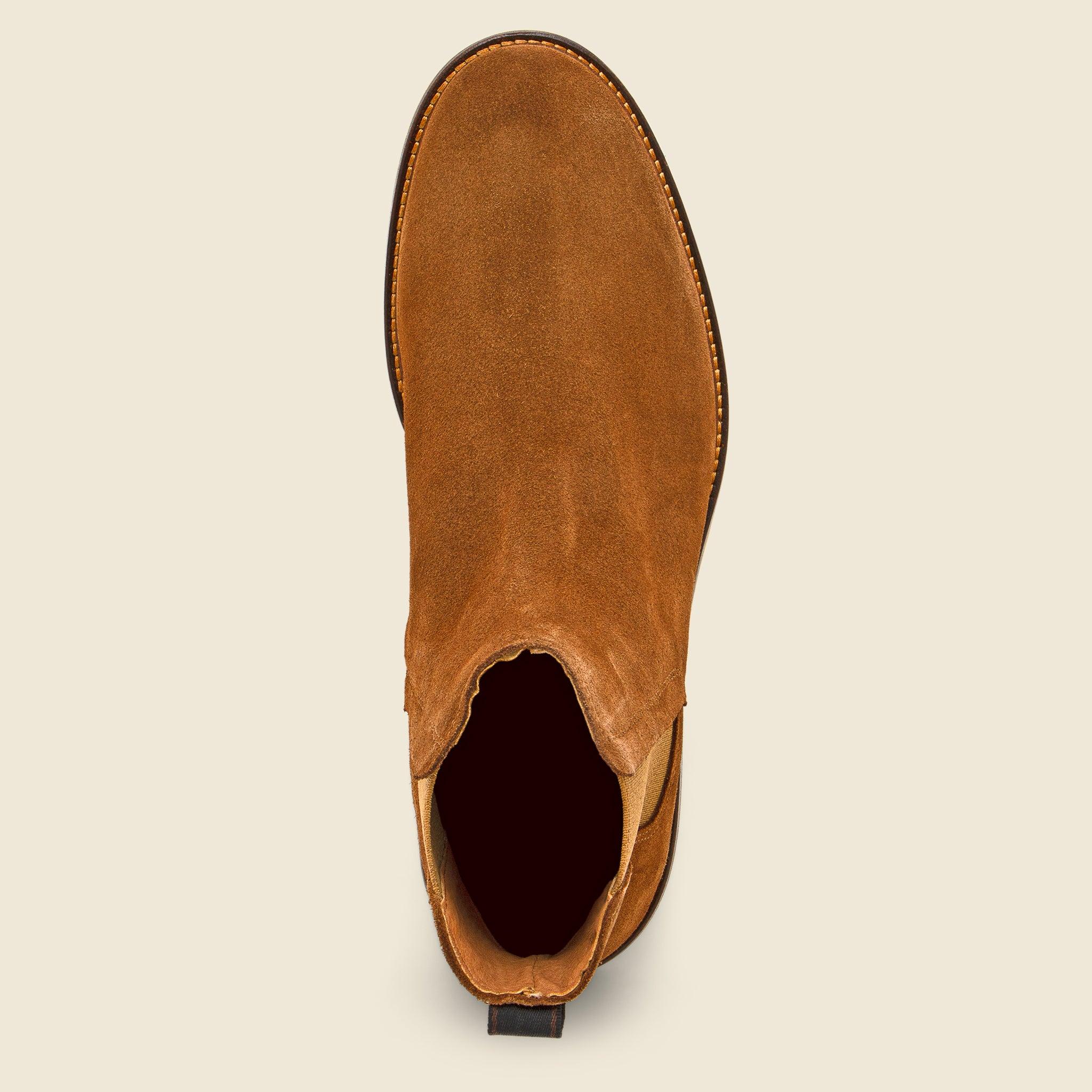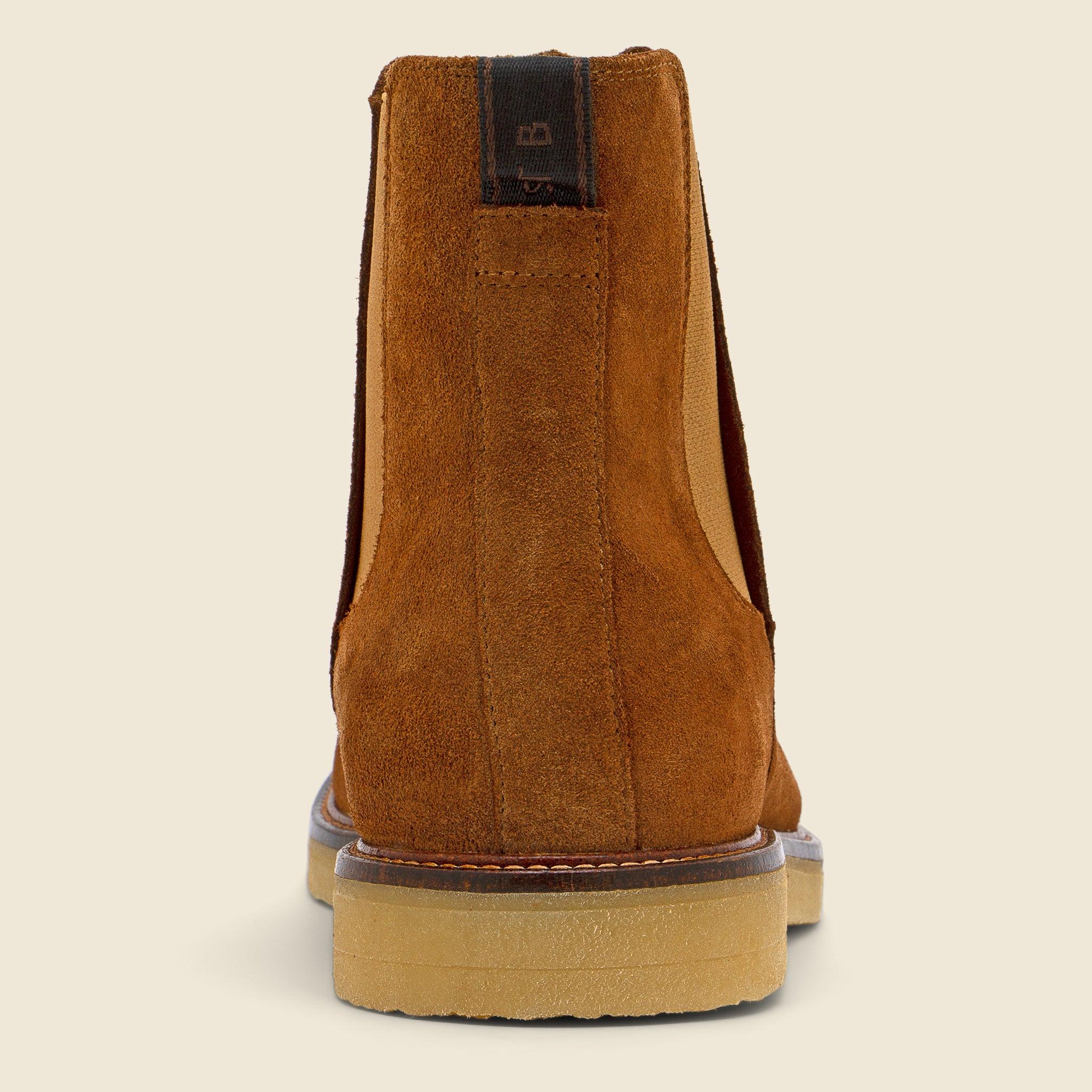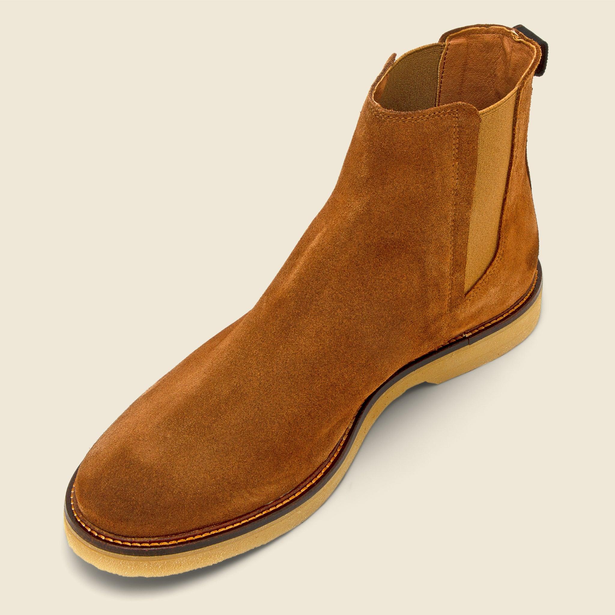 The Kip Suede Chelsea Boot from Shoe The Bear is a casual take on the classic Chelsea crafted from 100% LWG-certified suede that’s been specially treated to protect them from the elements. They have a slightly rounded silhouette that’s detailed with elasticated side panels, a durable rubber crepe-style outsole, and a cotton backstrap to help you take them off after a long day’s work. LWG-certified leather suede Water-repellent finish Elasticated side panels Flexible rubber outsole Soft microfiber lining Cotton backstrap Runs true to size, if between sizes we recommend sizing down one size Materials: leather, rubber outsole