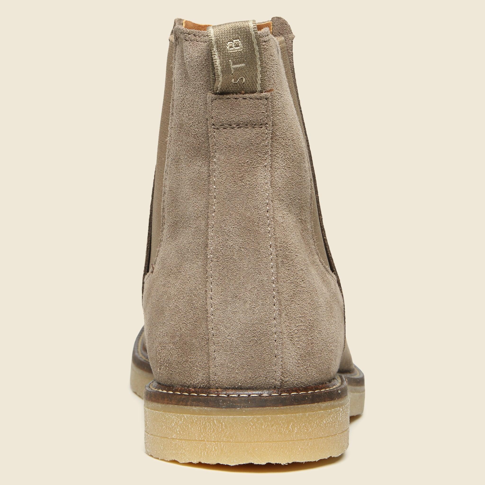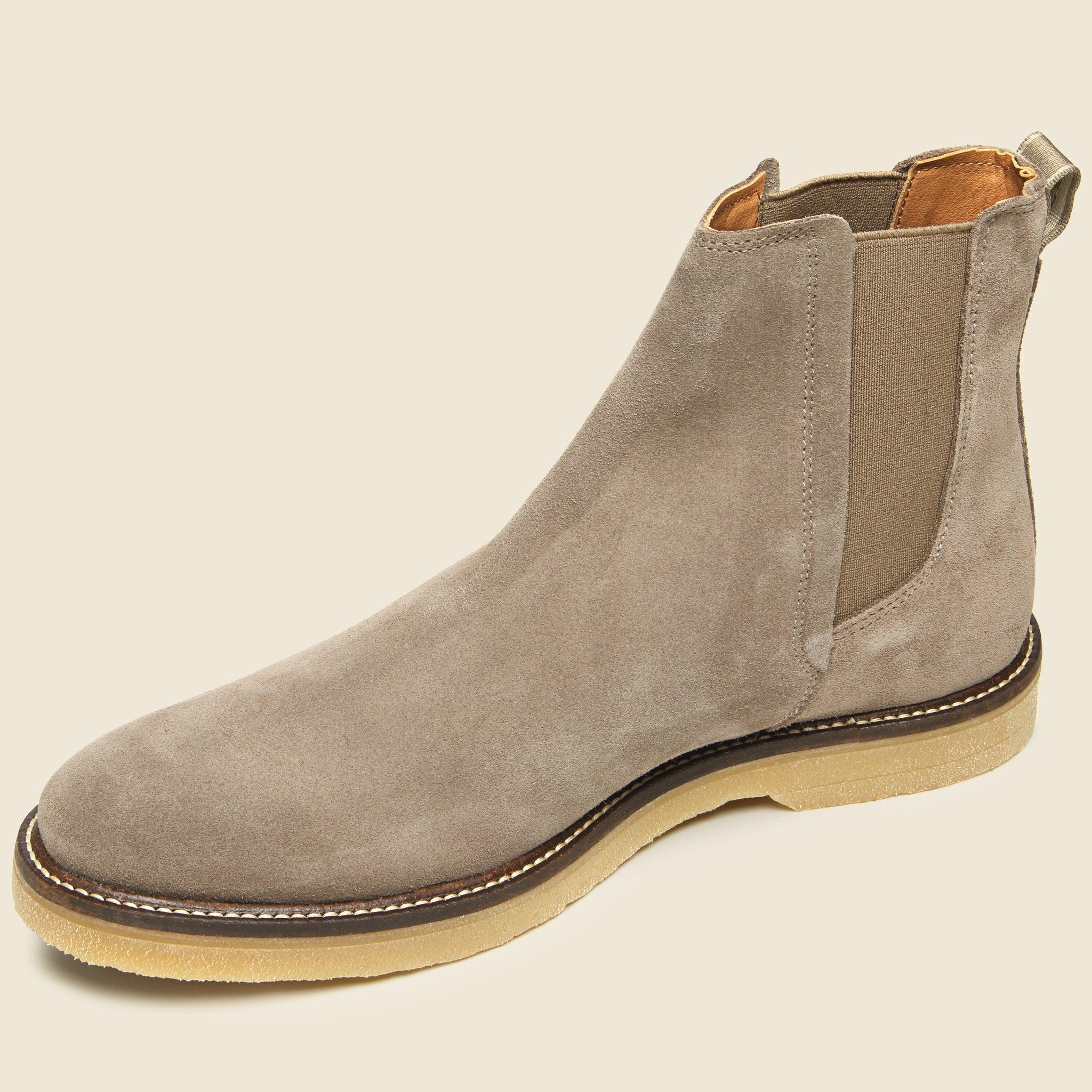 The Kip Suede Chelsea Boot from Shoe The Bear is a casual take on the classic Chelsea crafted from 100% LWG-certified suede that’s been specially treated to protect them from the elements. They have a slightly rounded silhouette that’s detailed with elasticated side panels, a durable rubber crepe-style outsole, and a cotton backstrap to help you take them off after a long day’s work. LWG-certified leather suede Water-repellent finish Elasticated side panels Flexible rubber outsole Soft microfiber lining Cotton backstrap Runs true to size, if between sizes we recommend sizing down one size Materials: leather, rubber outsole