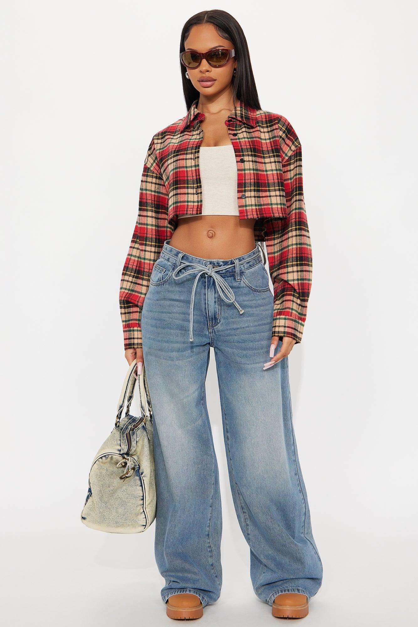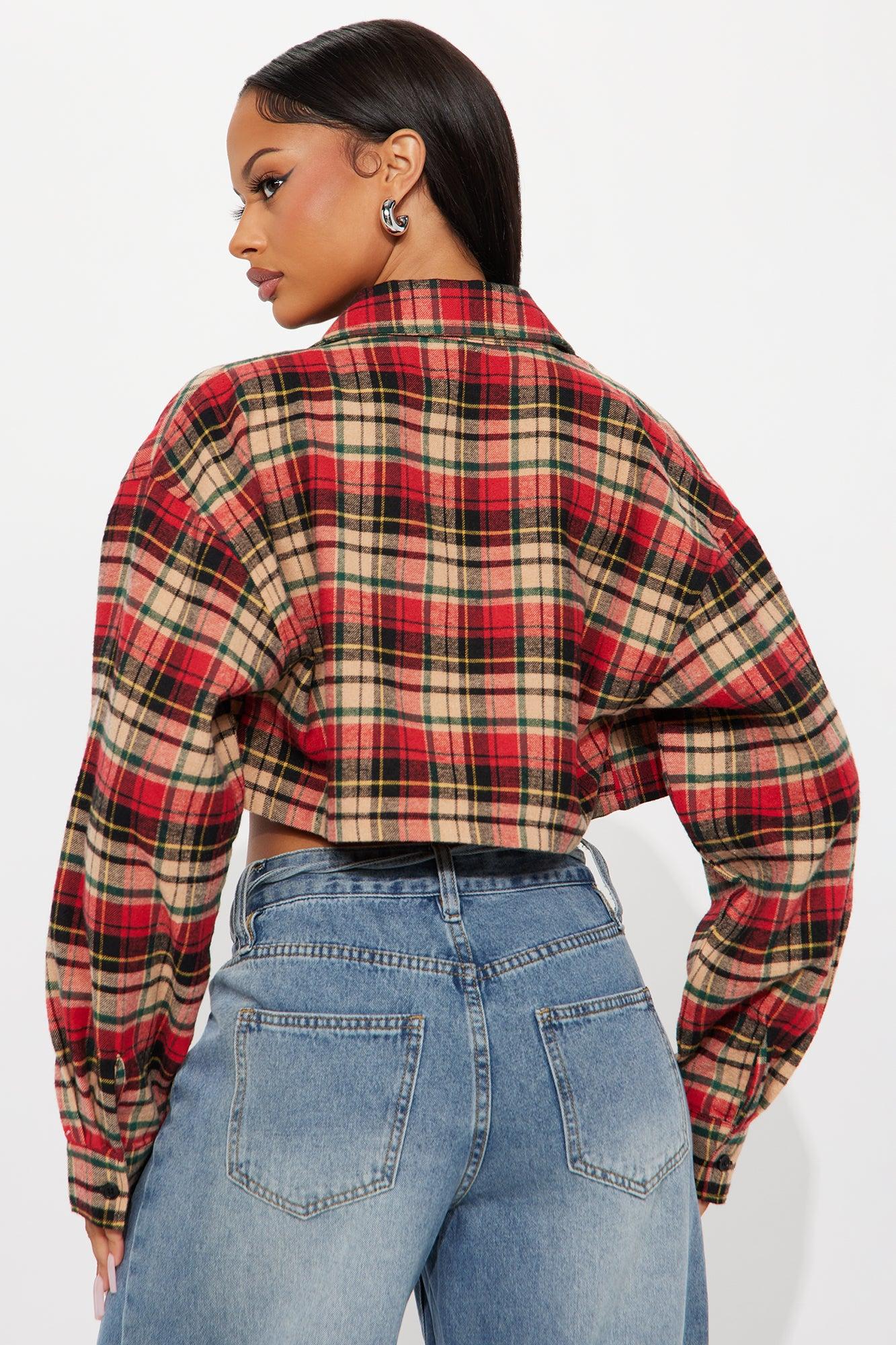 Kira Cropped Plaid Flannel Shirt - Red/combo Female