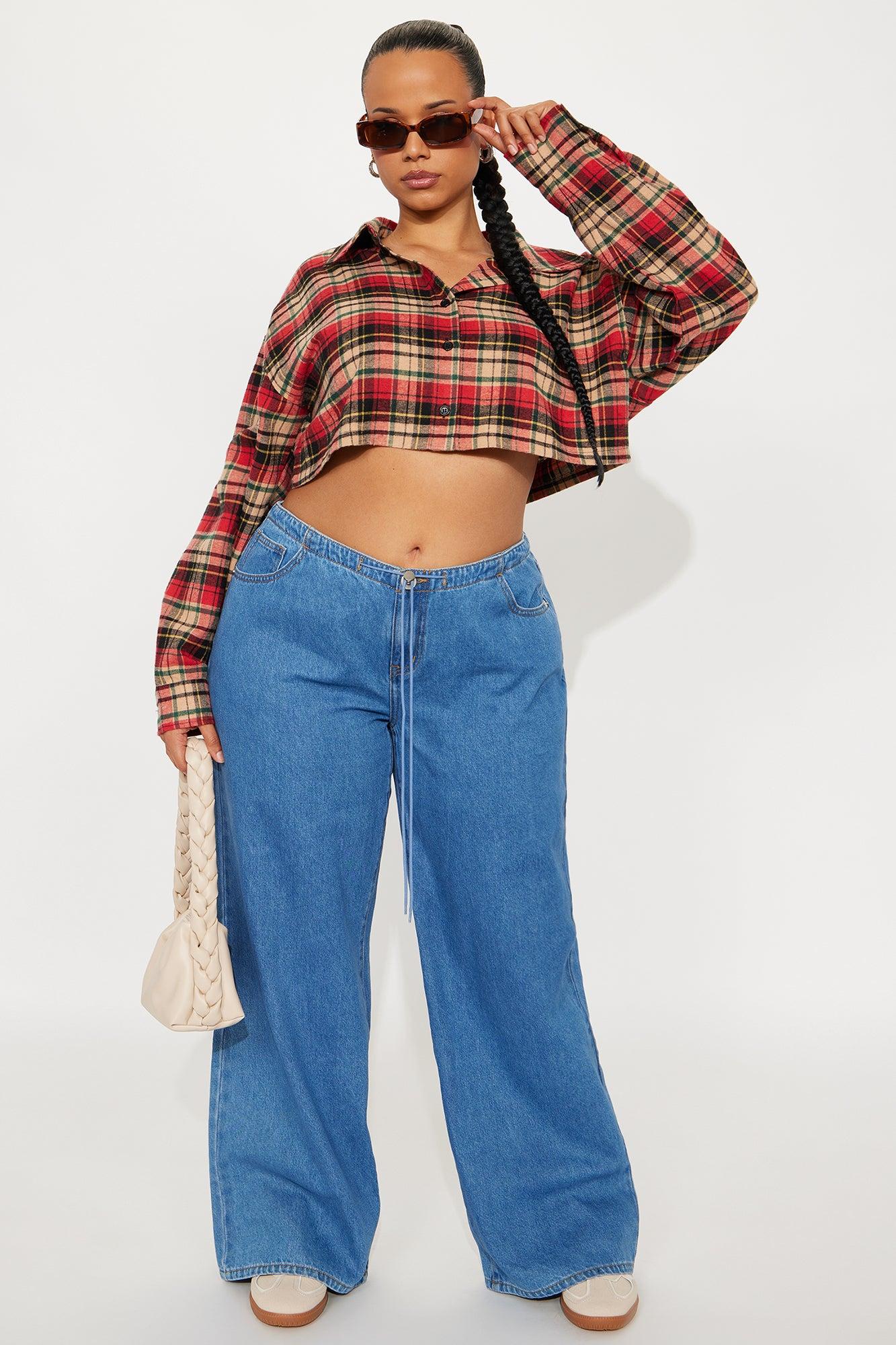 Available In Red/combo. Flannel Shirt Plaid Print Button Up Cropped Self: 70% Polyester 30% Cotton Imported California Proposition 65WARNING: Cancer and Reproductive Harm - www.P65Warnings.ca.gov.