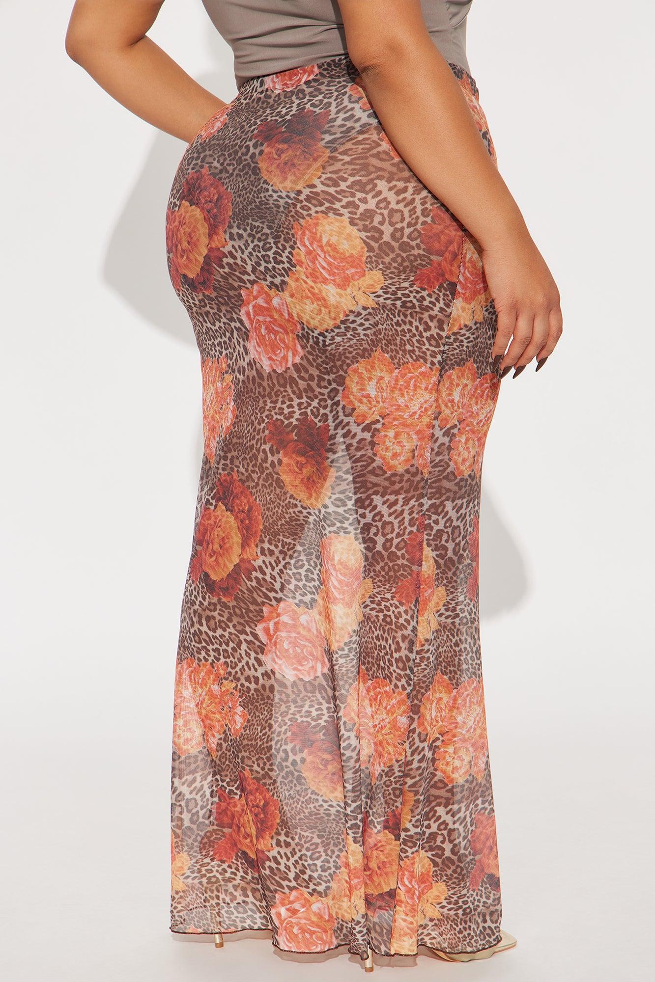 Available In Brown/combo. Maxi Skirt High Rise Elastic Waistband Body con Leopard Floral Print Sheer Mesh Disclaimer: Print Placement May Vary 95% Polyester 5% Spandex Imported