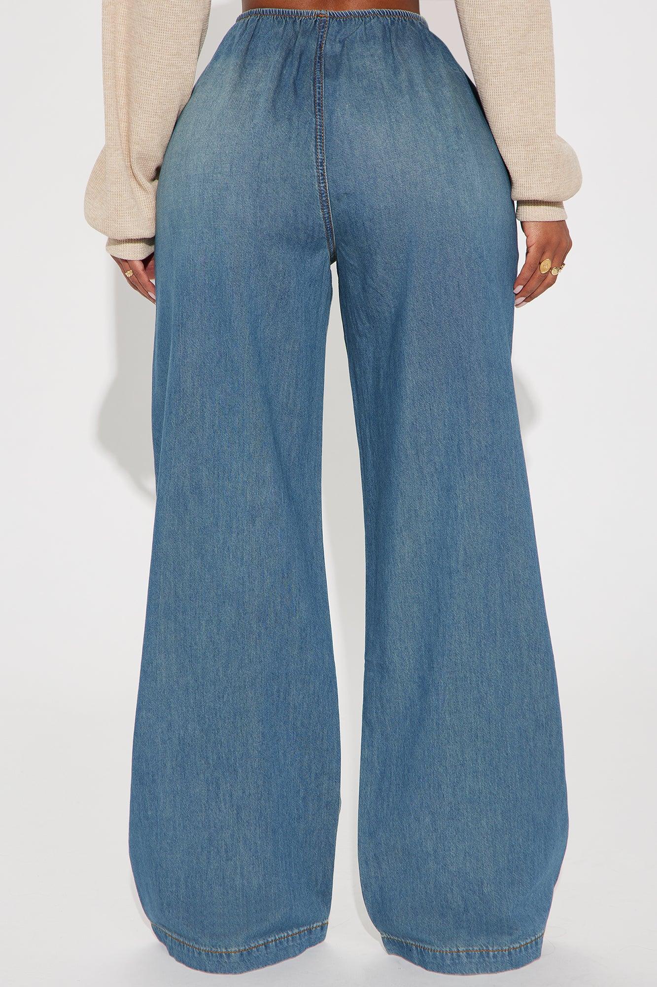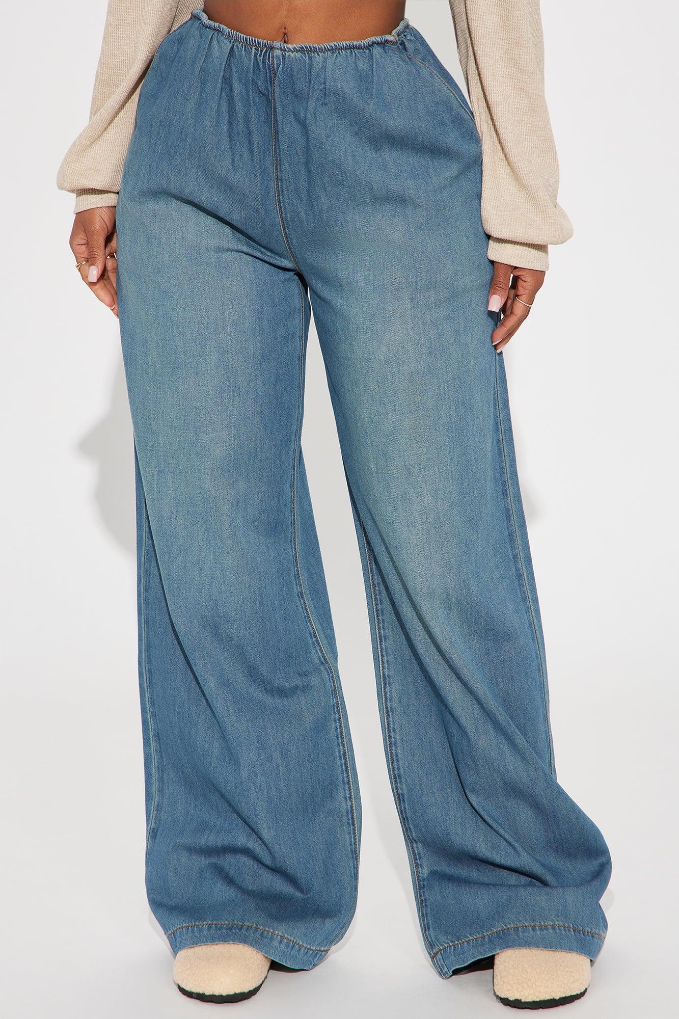Available In Medium Wash. Wide Leg Jean Front Pockets Foldover Elastic Waistband 11" High Rise 31.5" Inseam Non Stretch Disclaimer: Due To The Specialized Wash Process, Each Garment Is Unique. 80% Cotton 20% Rayon Imported California Proposition 65 WARNING: Cancer and Reproductive Harm - www.P65Warnings.ca.gov.