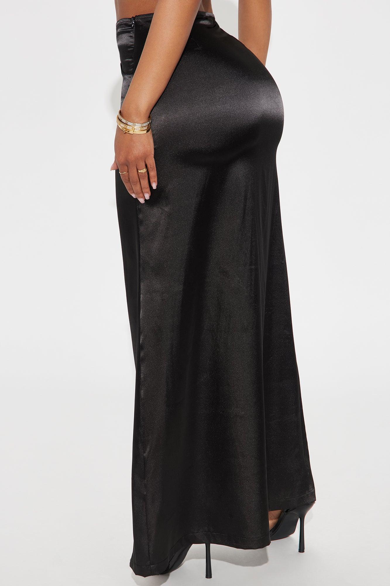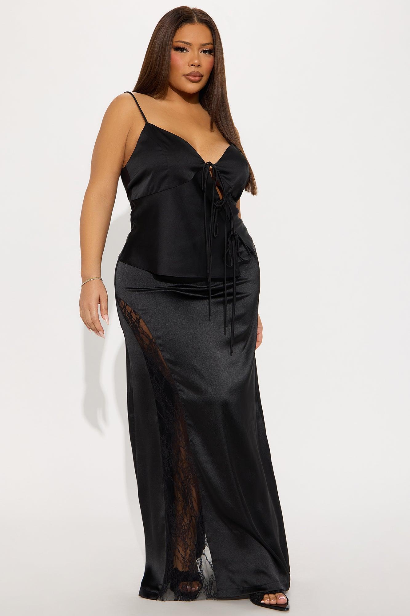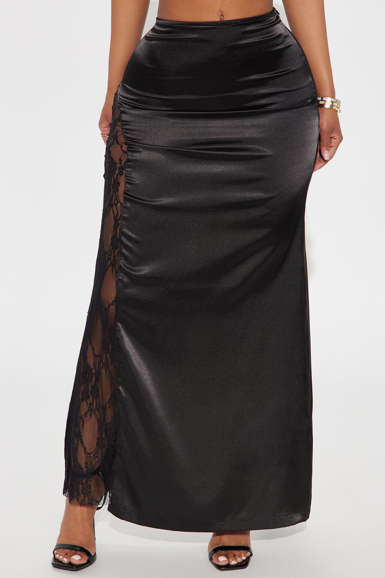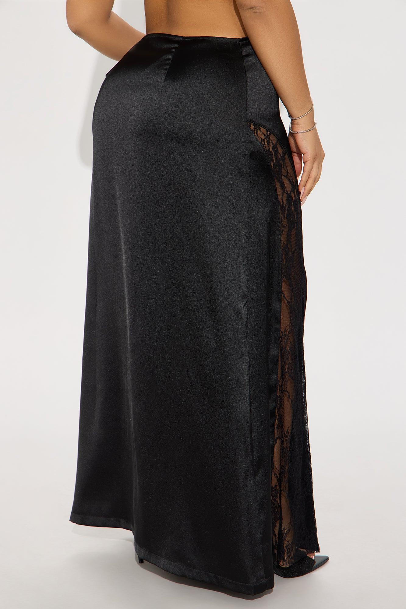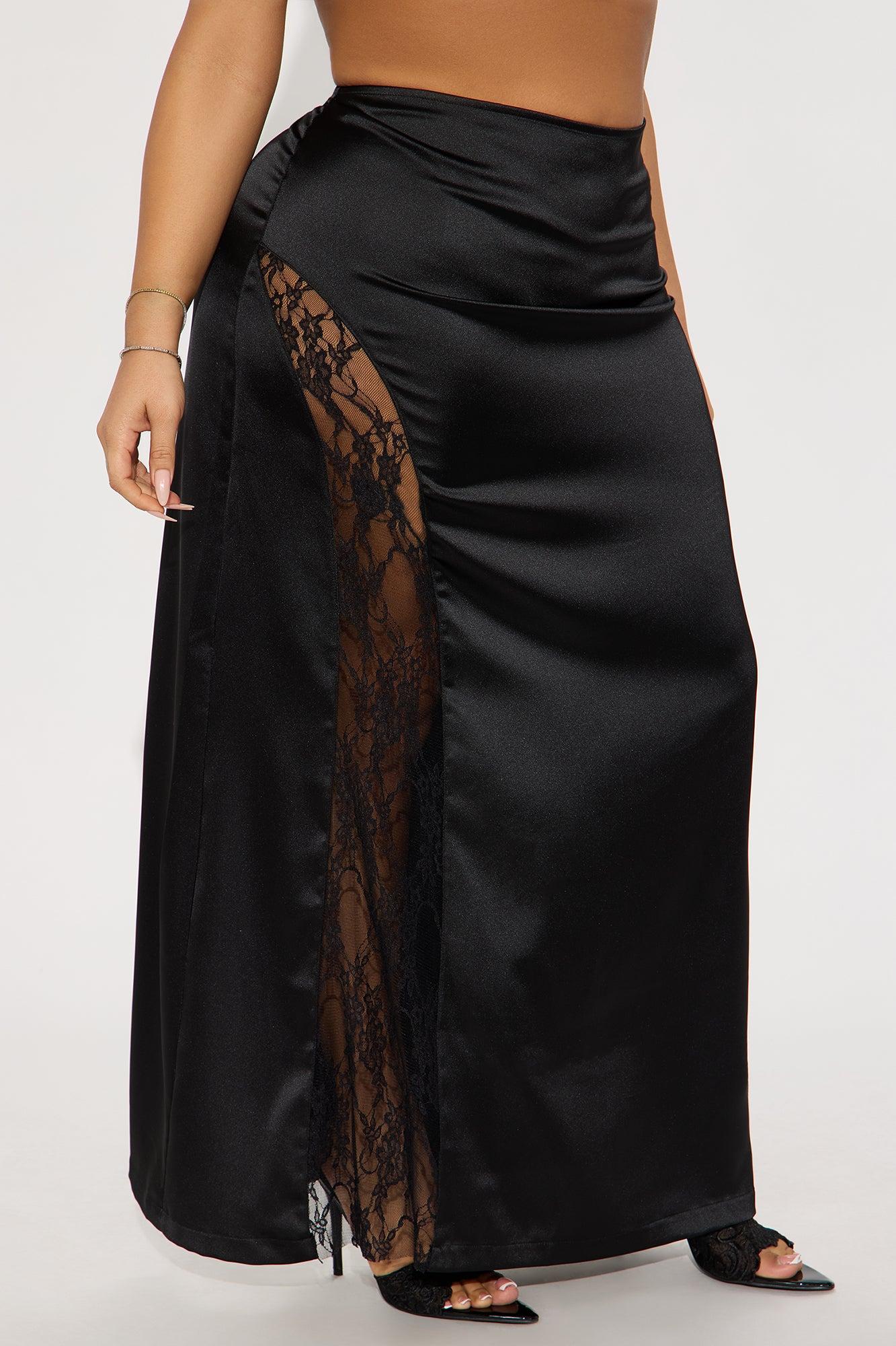 Kiss Me Goodbye Lace Trim Satin Skirt - Black