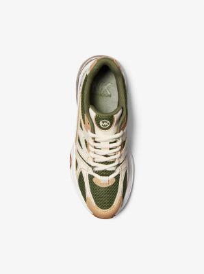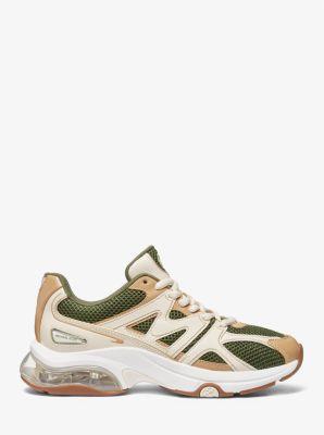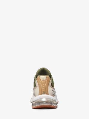 The chic MICHAEL Michael Kors Kit Trainer Extreme sneaker features a bubble heel insert for added style. Metallic leather upper with mesh overlay. Polyester lining. Synthetic footbed. Lace-up closure. Brand detailing on the tongue and footbed. Round toe design. Rubber outsole. Imported.