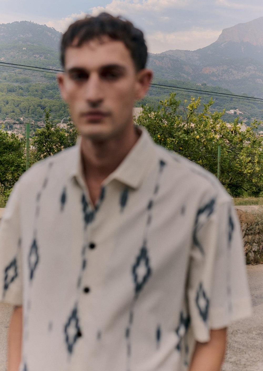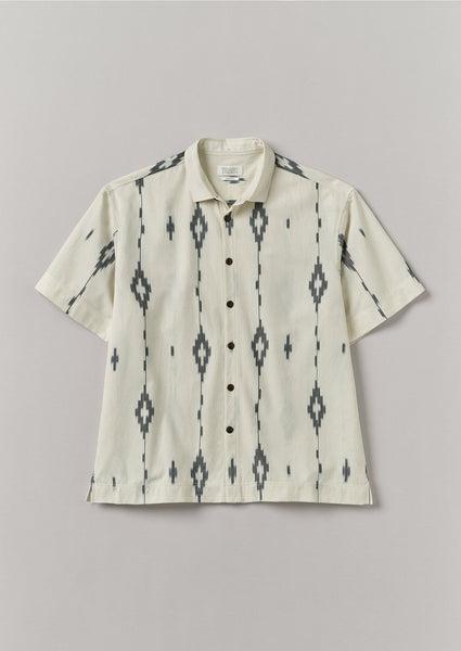 Ikat cotton. Relaxed fit. Point collar. Side split hem. Back hanging loop. Topstitching.