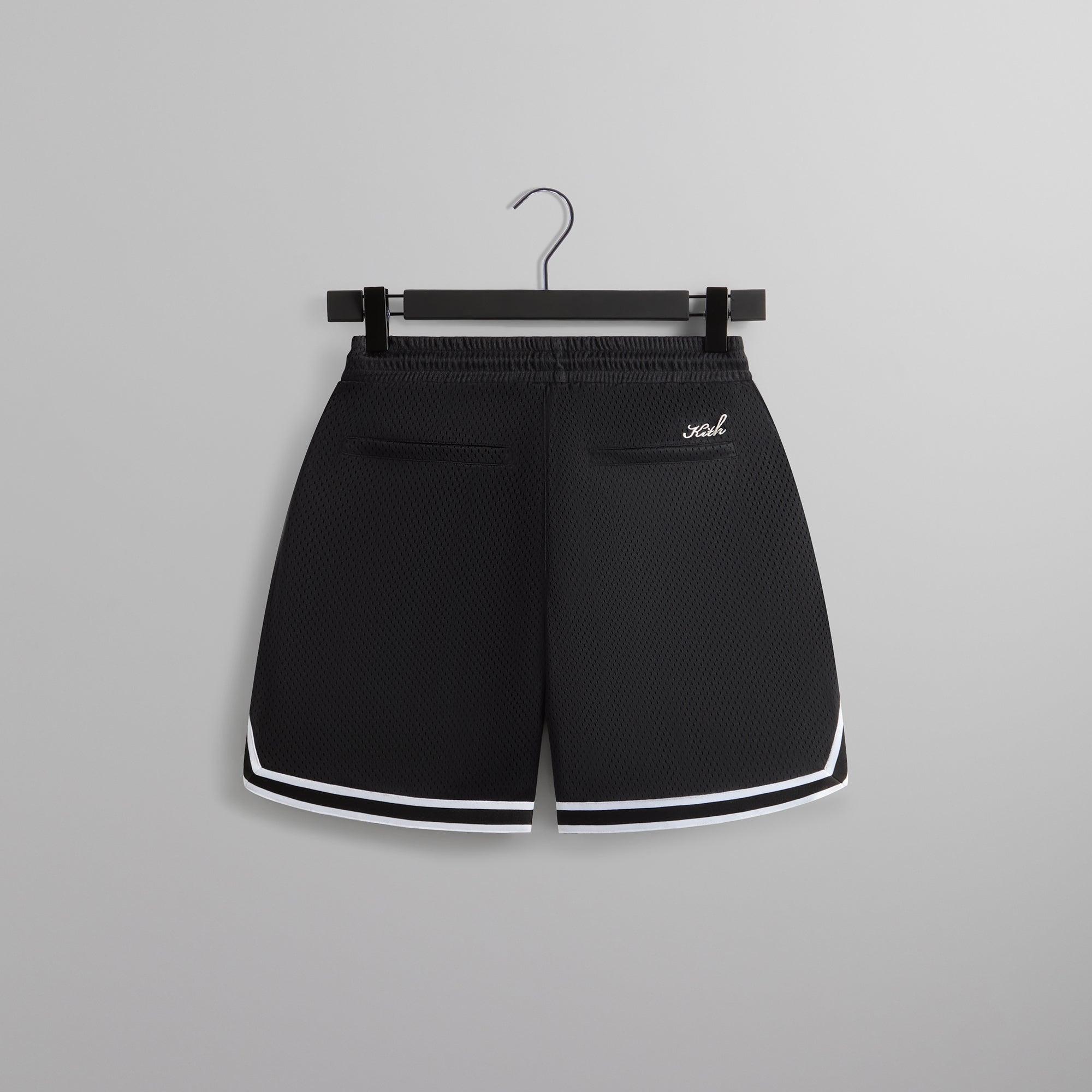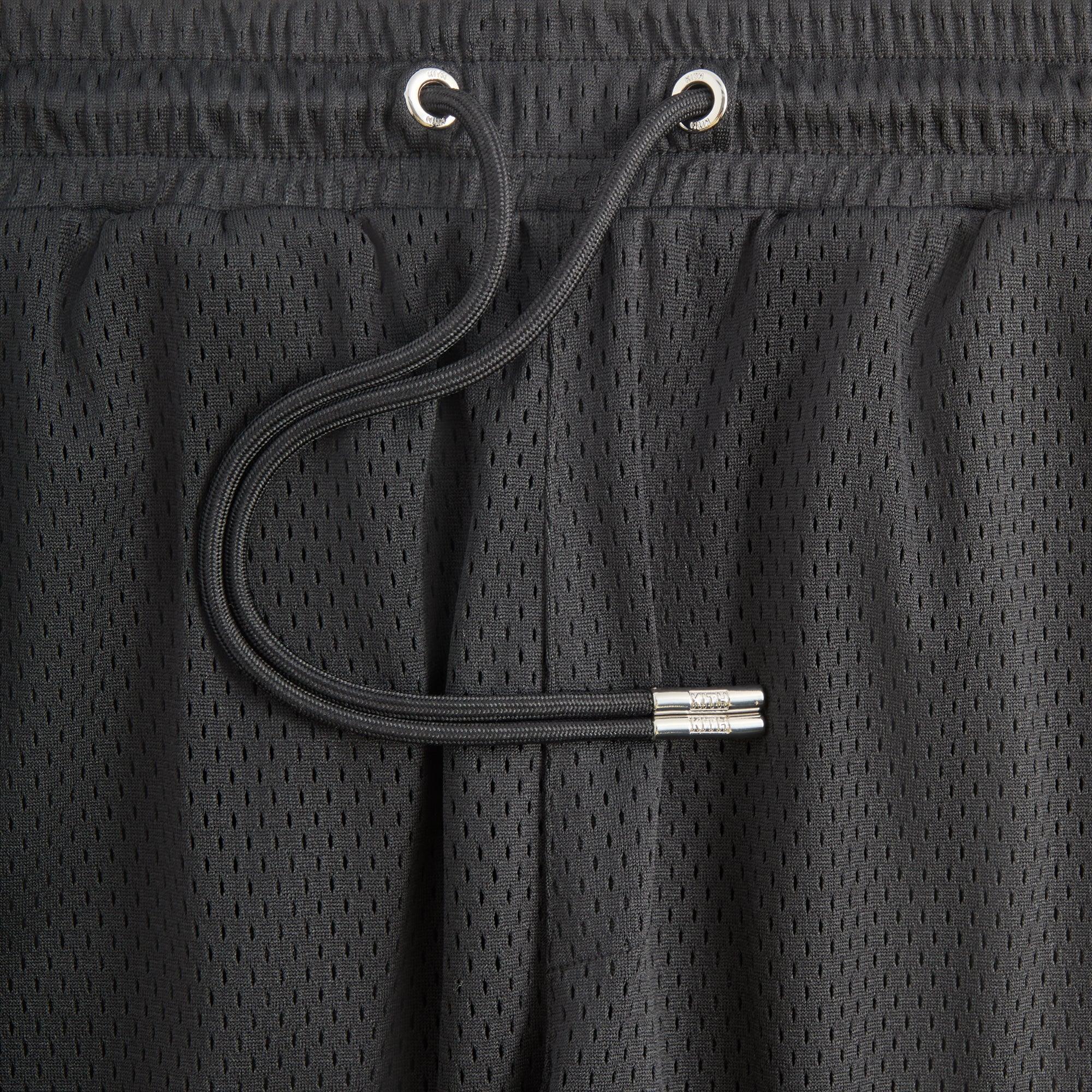 Polyester mesh fabric Elasticated waist with drawcord Hand pockets at front Zipped pockets at back Kith Script embroidery at back Full interior lining Striped tape detail at hem See garment tag for care instructions Style: khm060947-001 Color: Black Material: 100% Polyester