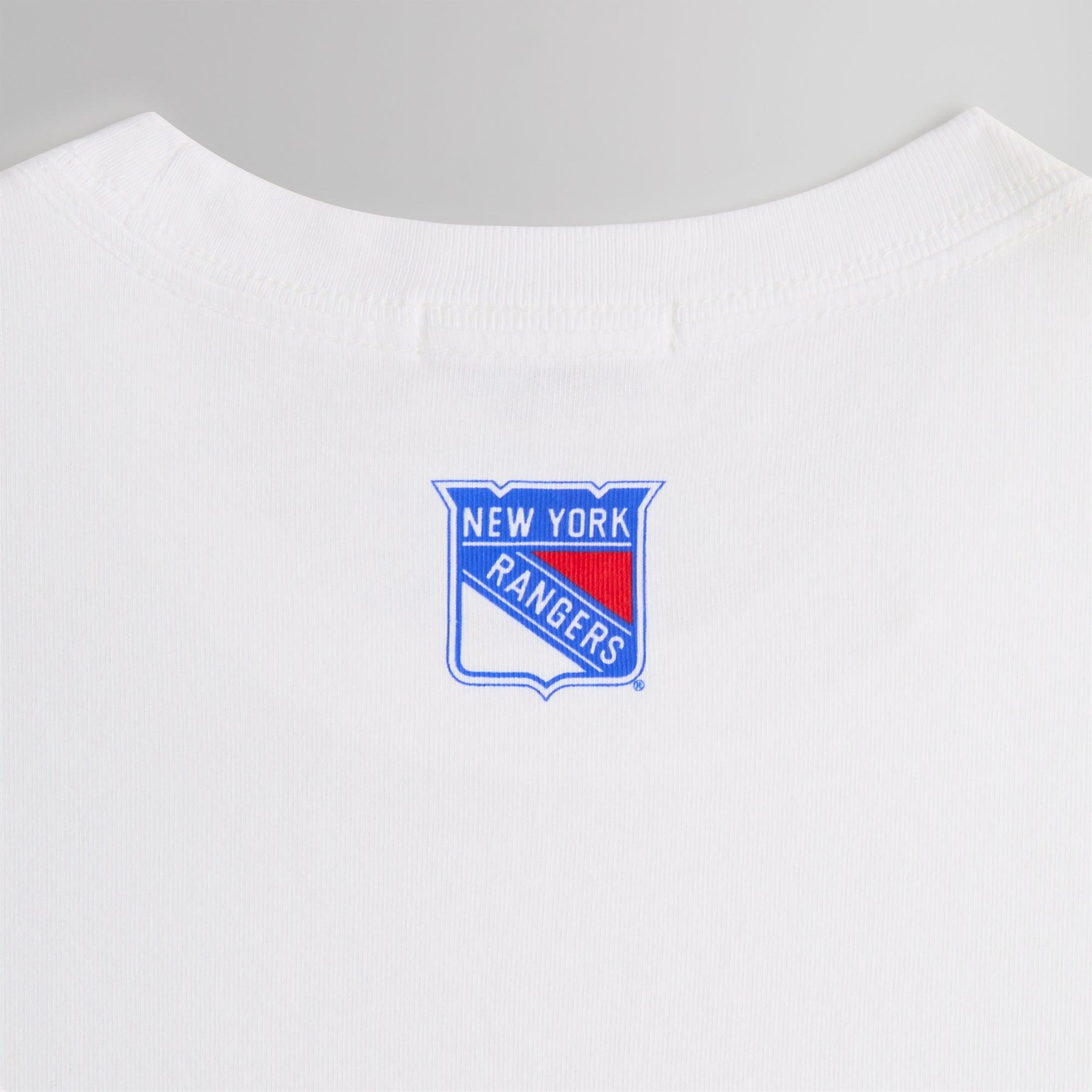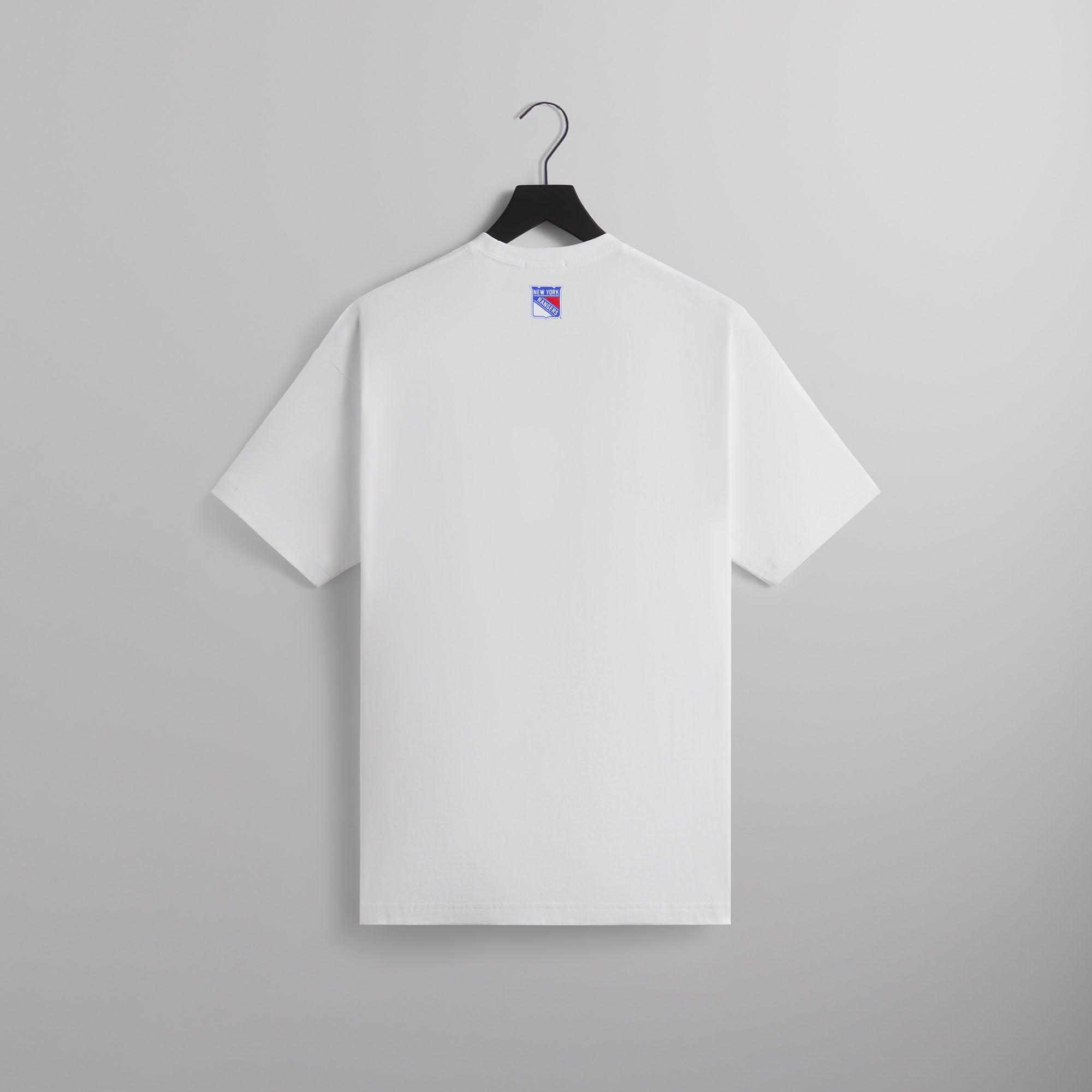Available U.S. only 230GSM cotton jersey Vintage wash Ribbed neckline New York Rangers-inspired Kith logo puff-printed on the front New York Rangers logo printed on the back Machine wash inside out Wash with like colors Style: khm033190-101 Color: White Material: 100% Cotton