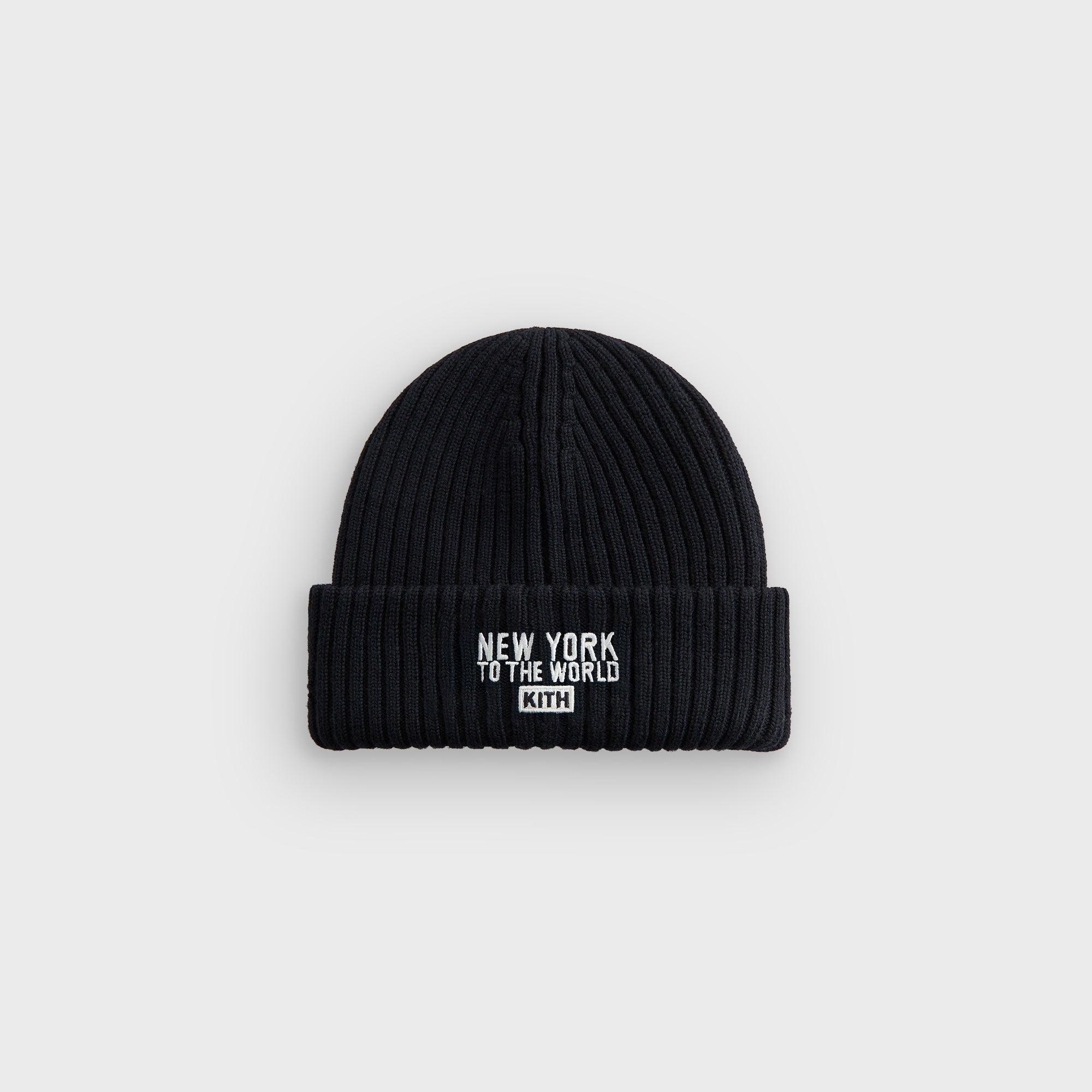 Merino wool New York Rangers Centennial Badge on the front cuff New York to the World embroidery on the back Kith Classic Logo embroidered on the back Beanie silhouette Style: khm051417-001 Color: Black Material: 100% Merino Wool