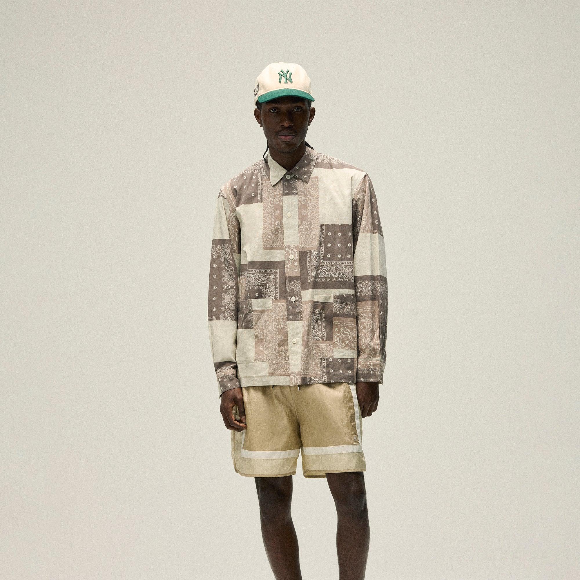 Soft lightweight voile cotton All-over bandana print Kith-branded button closures at the front and sleeve cuffs Patch pockets at front Slightly oversized fit See garment tag for care instructions Style: khm033477-007 Color: Overcast Material: 100% Cotton