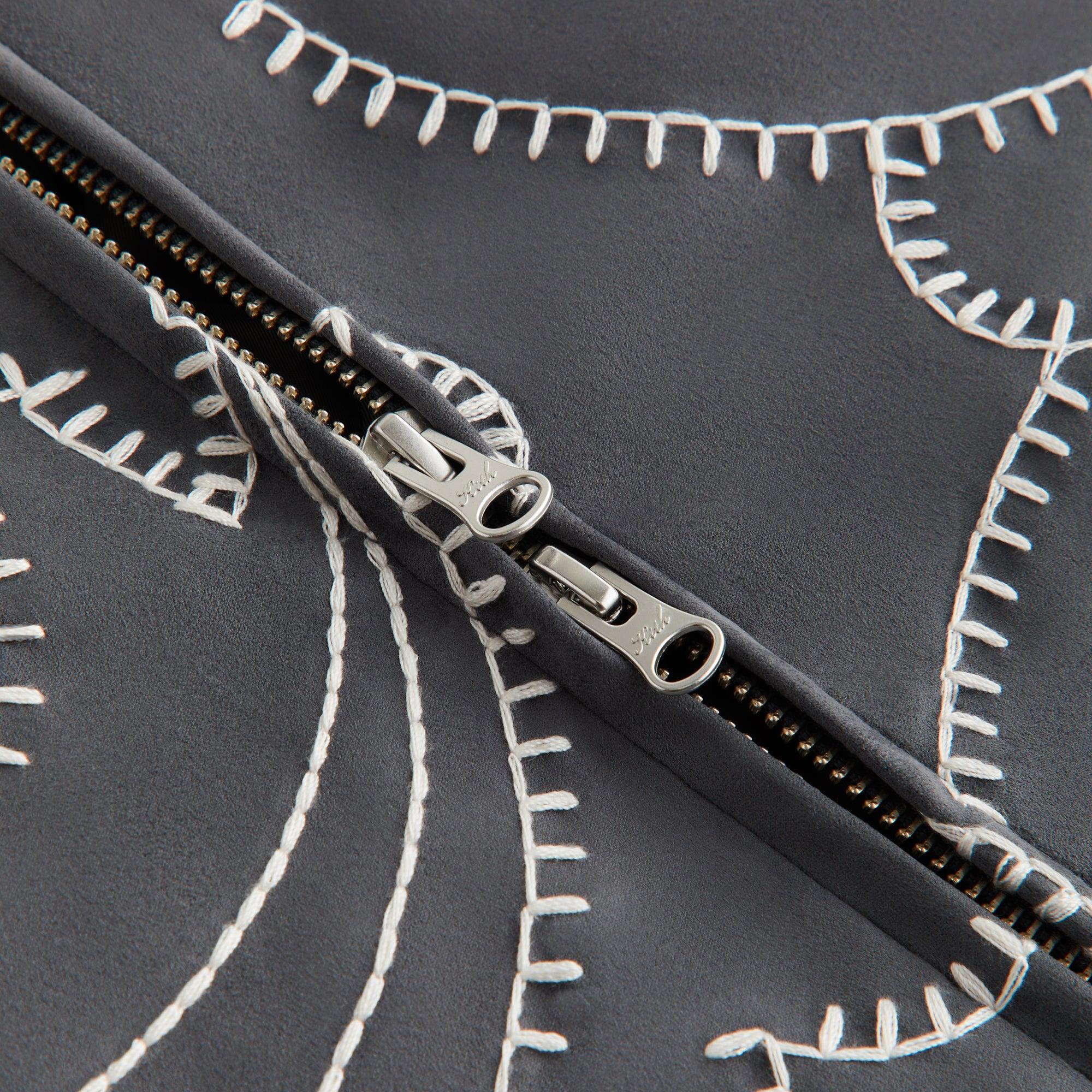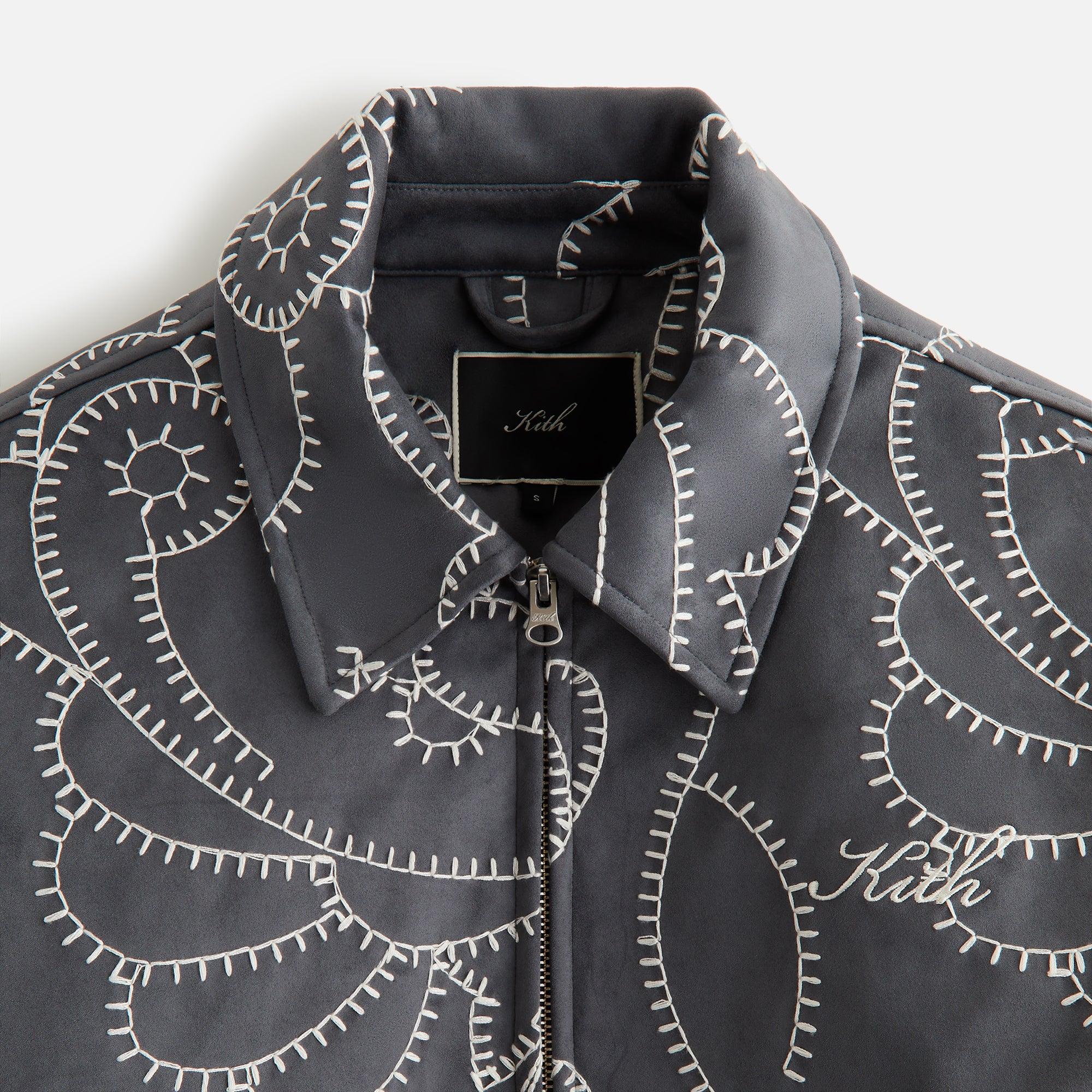 Lightweight bonded microsuede fabric Quilted lining Two-way zipper closure at front with Kith-branded puller Ribbed at sleeve cuffs and hem Side seam pockets Kith logo embroidery on chest All-over contrast thick embroidery Dry clean only Style: khw010232-480 Color: Asteroid Material: 90% Polyester / 10% Elastic