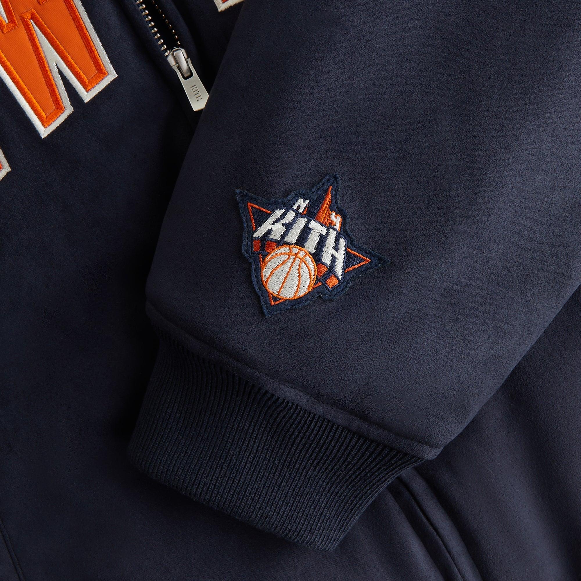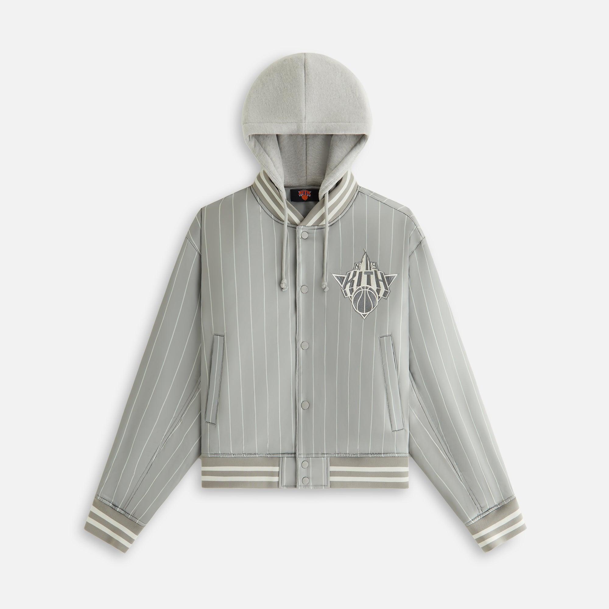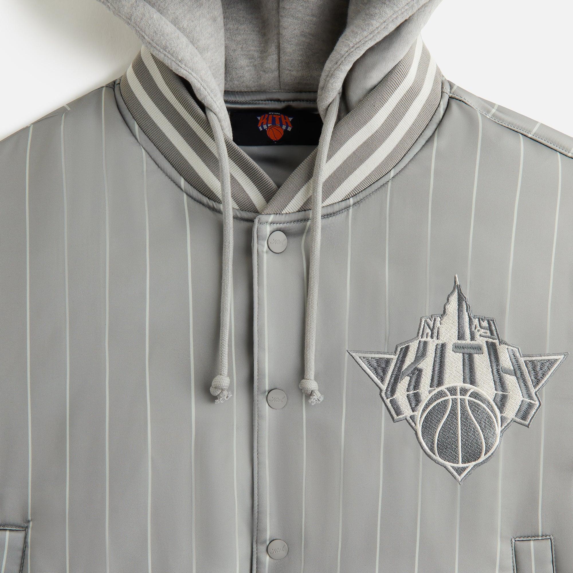 All-over printed stretch satin Fully lined Tipped rib artwork Kith-branded snap closures Drawcord-adjustable hood Welt pockets Ribbed at sleeve cuffs and hem Kith for the New York Knicks chenille patch on chest New York to the World artwork at the back Kith Classic Logo embroidery on back Pin included as a gift with online purchase while supplies last Dry clean only Style: khw010227-179 Color: Earl Material: 98% Polyester / 2% Spandex