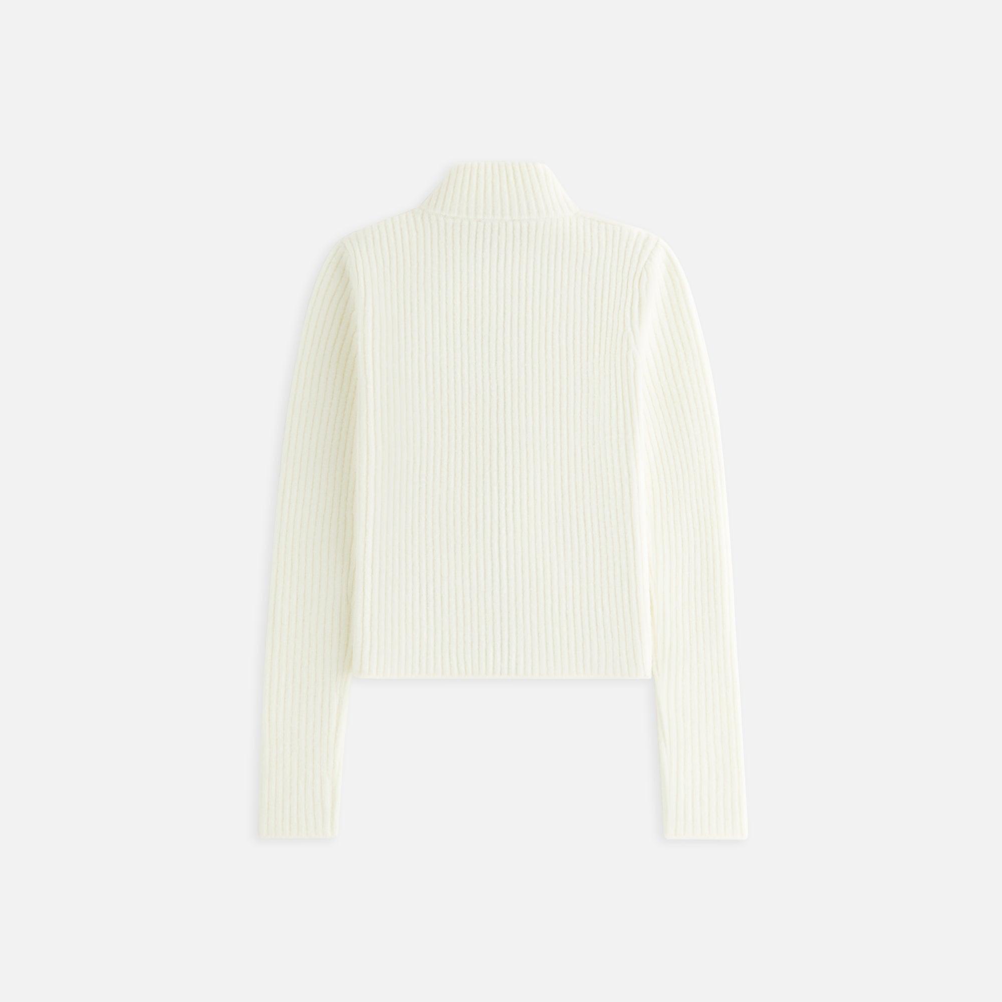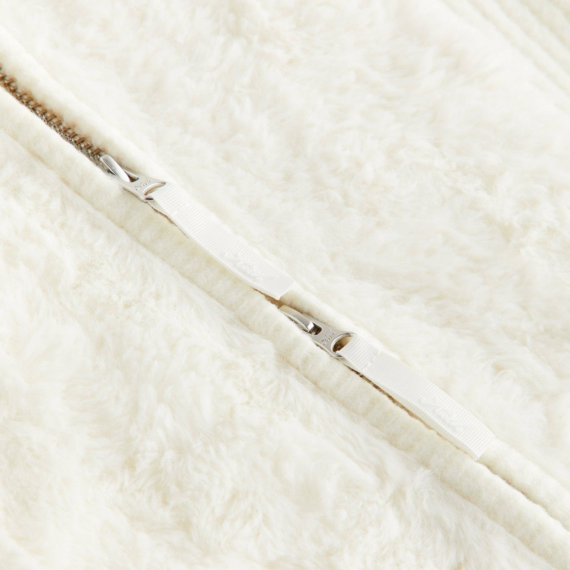 Tufted faux fur and acrylic nylon wool knit fabric Two-way separating center front zipper closure Front panel tufted faux fur Rest of body sweater ribbed on neck, sleeve cuffs, and hem Mock neckline Kith logo grosgrain zipper pullers Machine wash separately or hand wash Style: khw030731-104 Color: Sandrift Material 1: 100% Polyester / Material 2: 48% Acrylic / 39% Nylon / 10% Wool / 3% Spandex