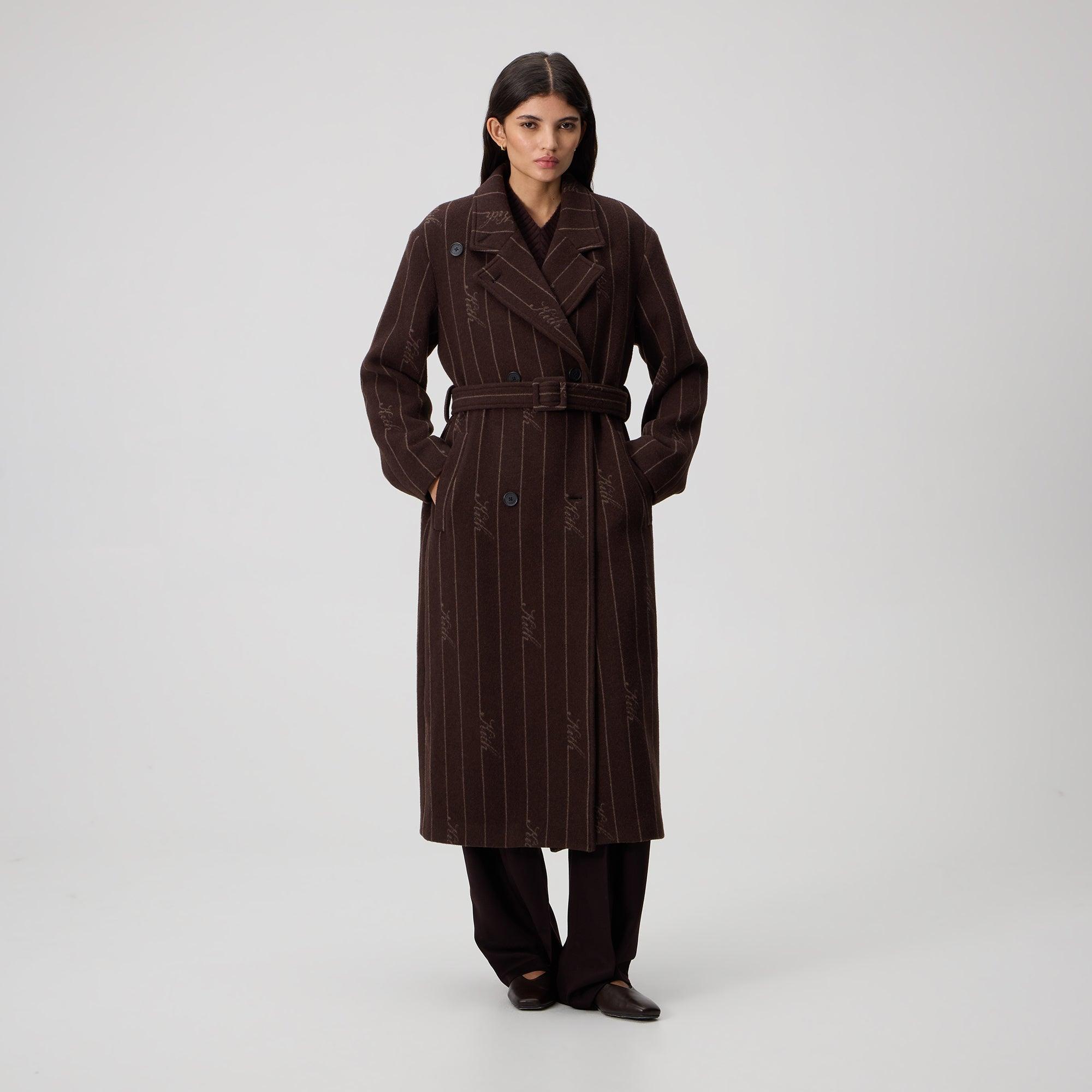 Pinstripe melton wool All-over custom Kith jacquard Detachable scarf Kith-branded logo buttons Welt pockets Removable belt High vent construction on the back See garment tag for care instructions Style: khw010315-244 Color: Incognito Material: 75% Virgin Wool / 25% Nylon