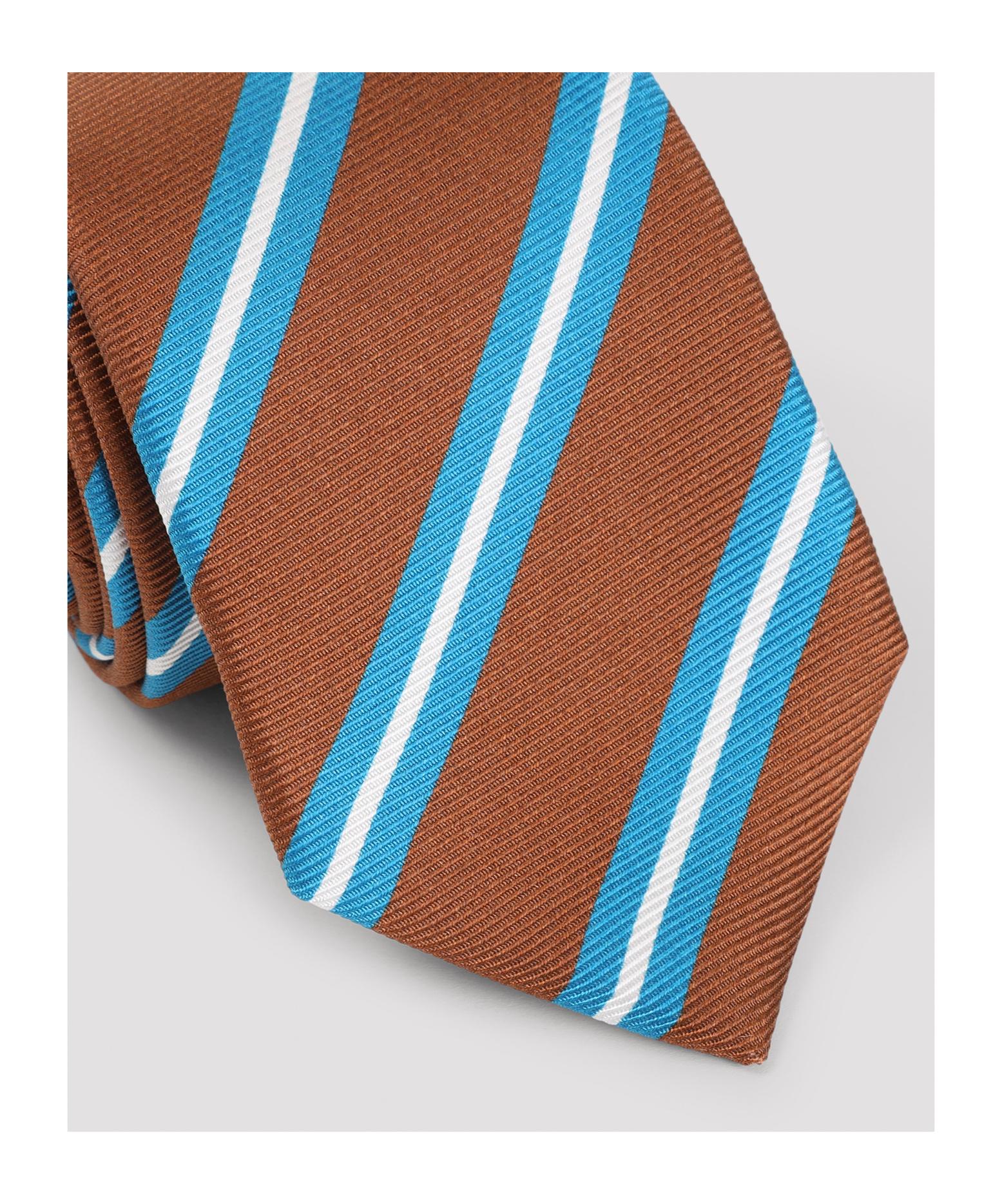 Shop Kiton Brown Silk Tie With White And Blue Stripes from 800+ stores, starting at $143. Enhance your accessory collection with the Kiton silk tie, showcasing exceptional Italian craftsmanship. A rich brown silk base is elegantly patterned with white and blue stripes. The fully lined design, along with tonal stitching, provides a refined finish that embodies timeless sophistication, ideal for any formal outfit.- Material: Silk - Color: Brown with white and blue stripes - Design: Fully lined - Features: Tonal stitching - Style: Formal accessory