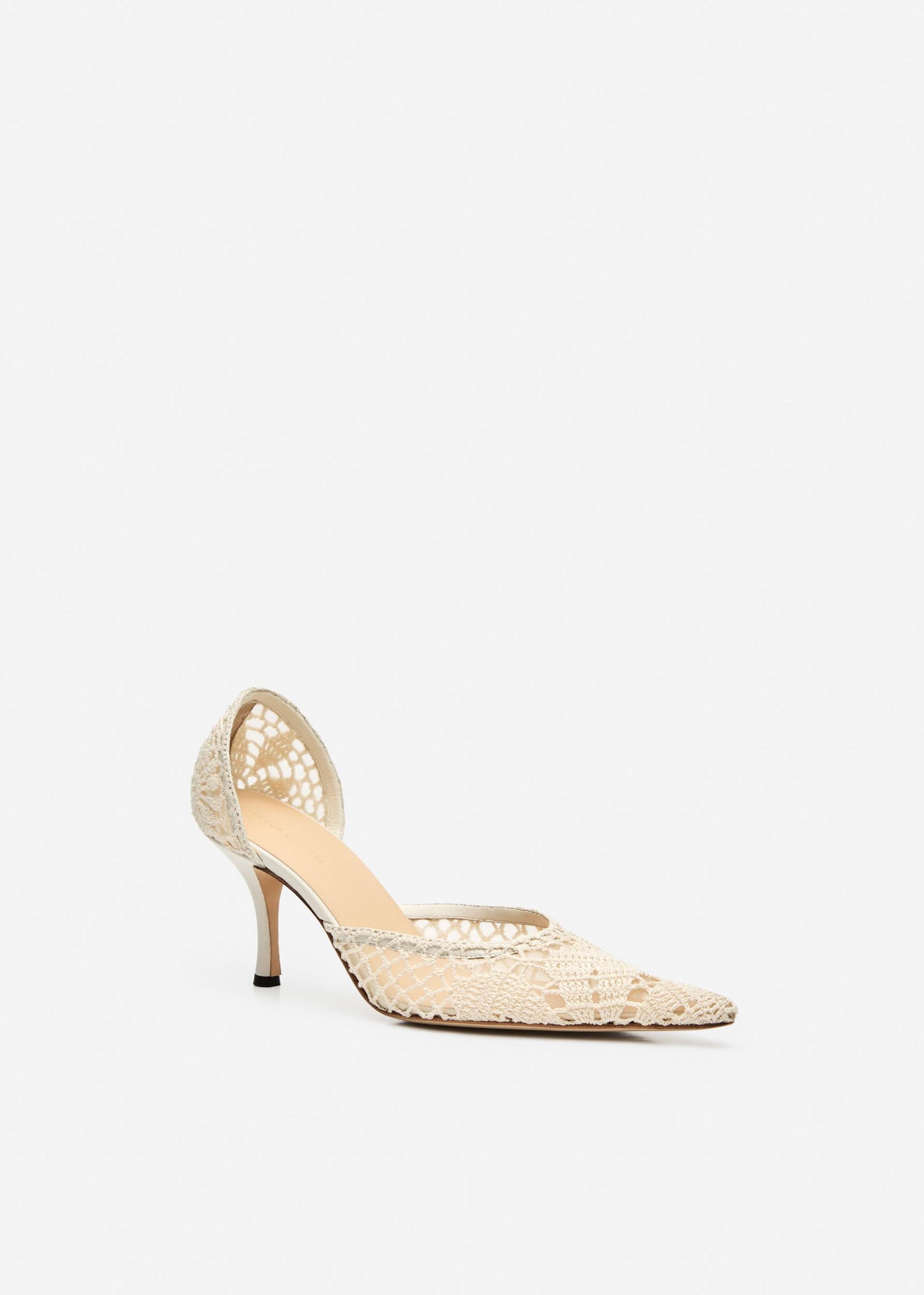 Kitten pointed crochet heels in cream