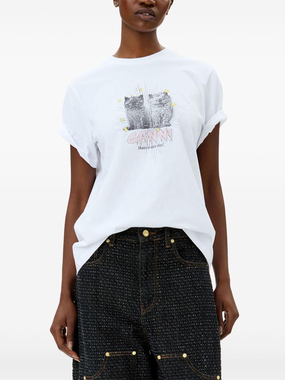 GANNI Kittens T-shirt | White | Organic Cotton | T-Shirts & Jersey Shirts | Tops | Clothing | Women