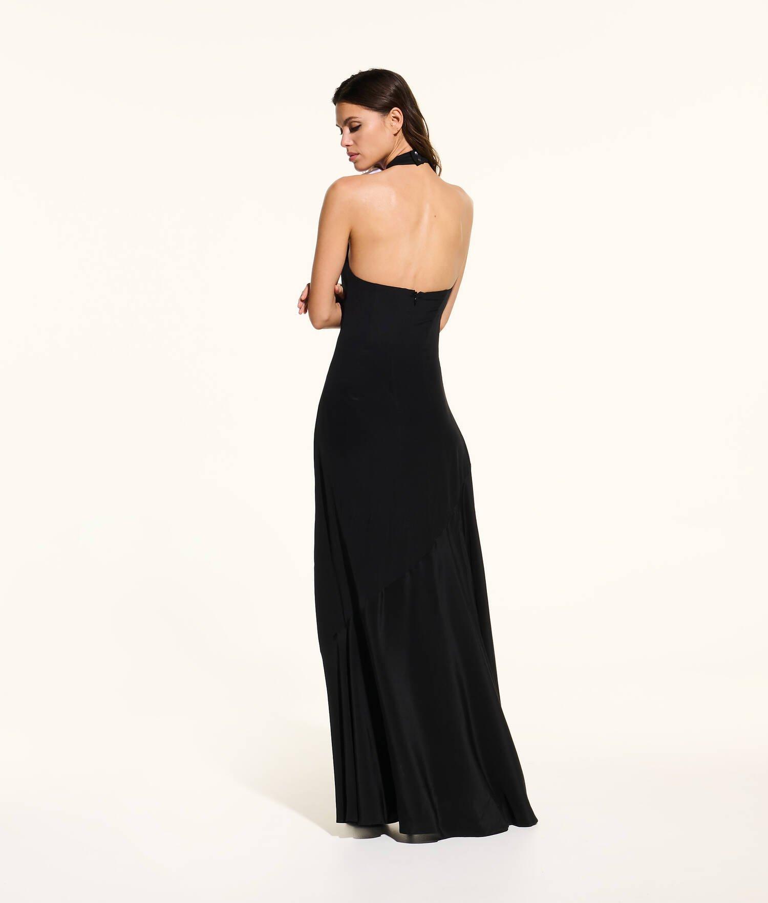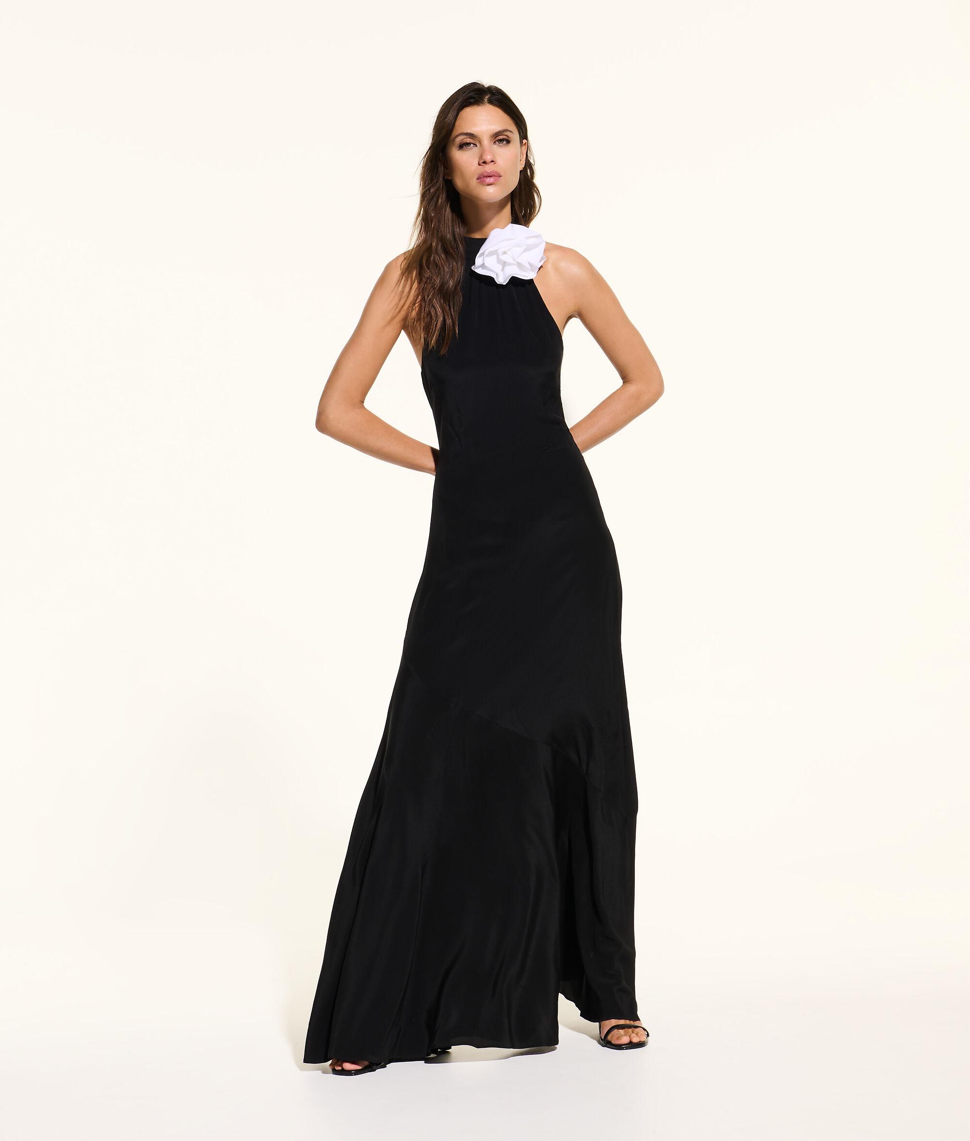 Crafted from sumptuous silk in a floor-sweeping silhouette, this halter dress evokes timeless elegance. A detachable white rose adds an artful detail to the neckline, while the concealed zip fastening offers a flawless finish. KARL Autograph embroidery completes the gown’s refined sophistication.