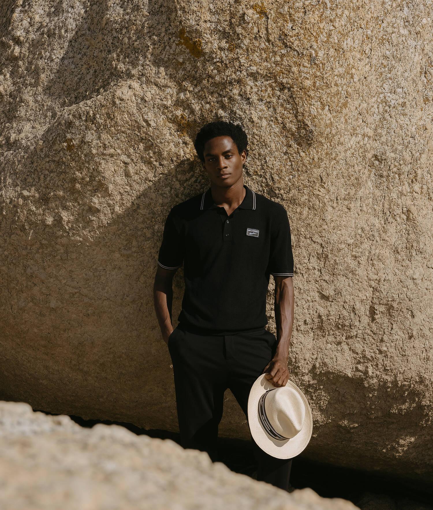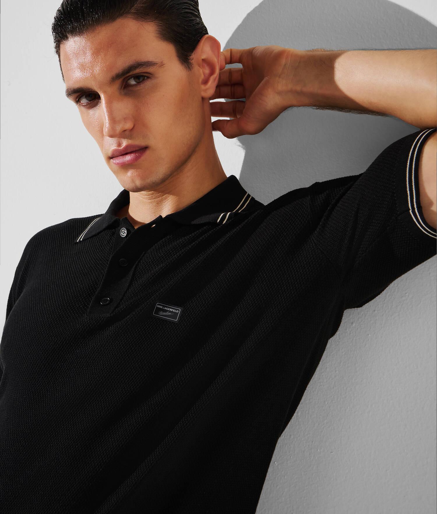 Offering year-round versatility, this classic polo is elevated with a tonal knit texture and contrasting stripes. It's embellished with a bespoke embroidered patch and crafted from a beautiful silk-blend fabric for breathable, all-day comfort.