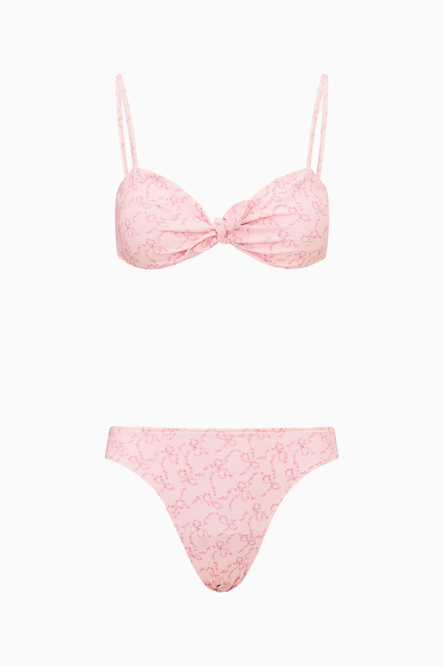 Introducing the Klaudyna Bikini. This sweet swimwear has a tied front for a feminine and flirty look, adjustable spaghetti straps on the top, and low rise bottoms with a little bit of coverage in the back. 85% polyester, 15% spandex Adjustable spaghetti straps Low rise bottoms Mid coverage