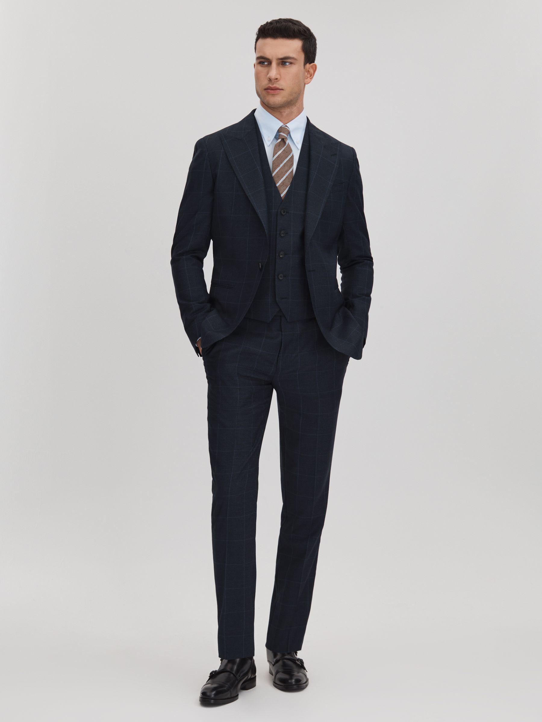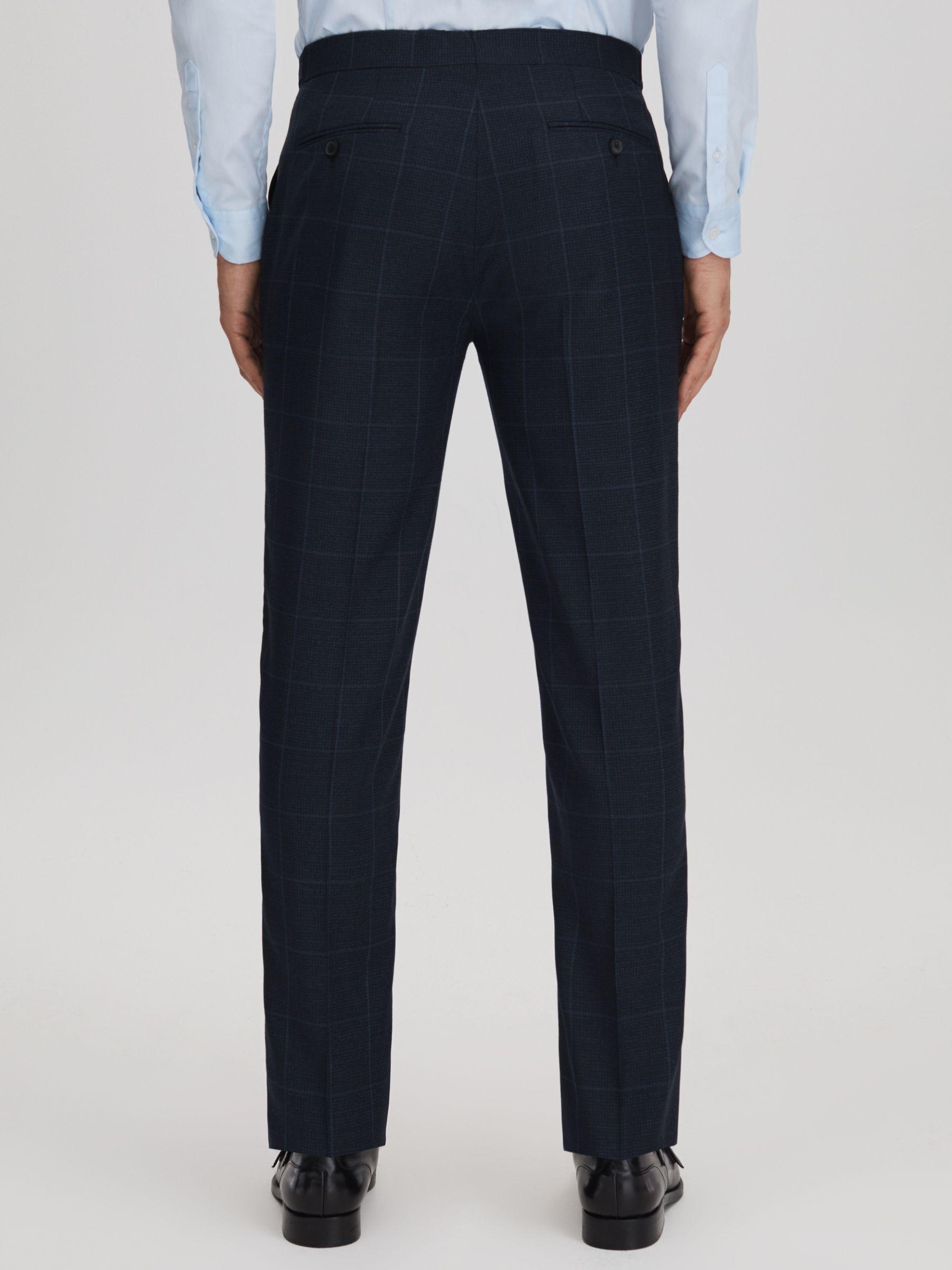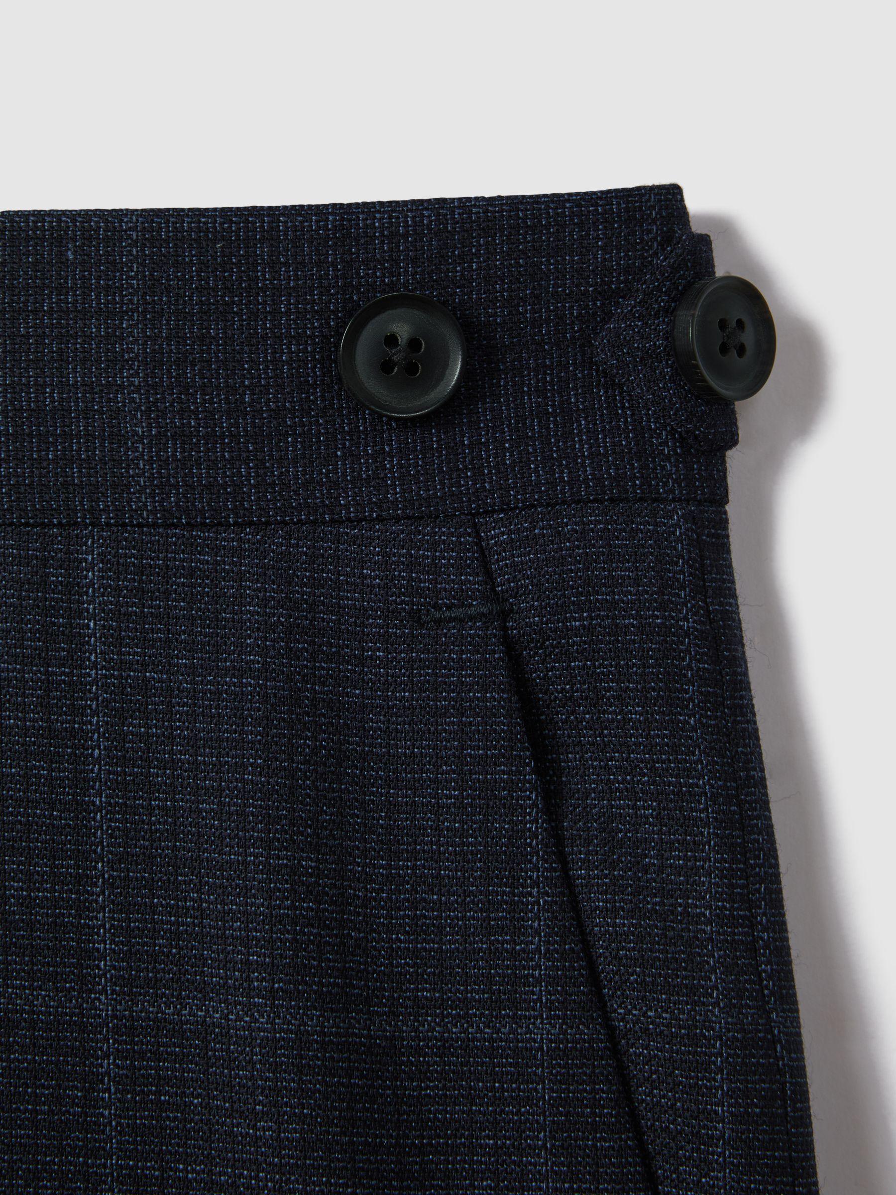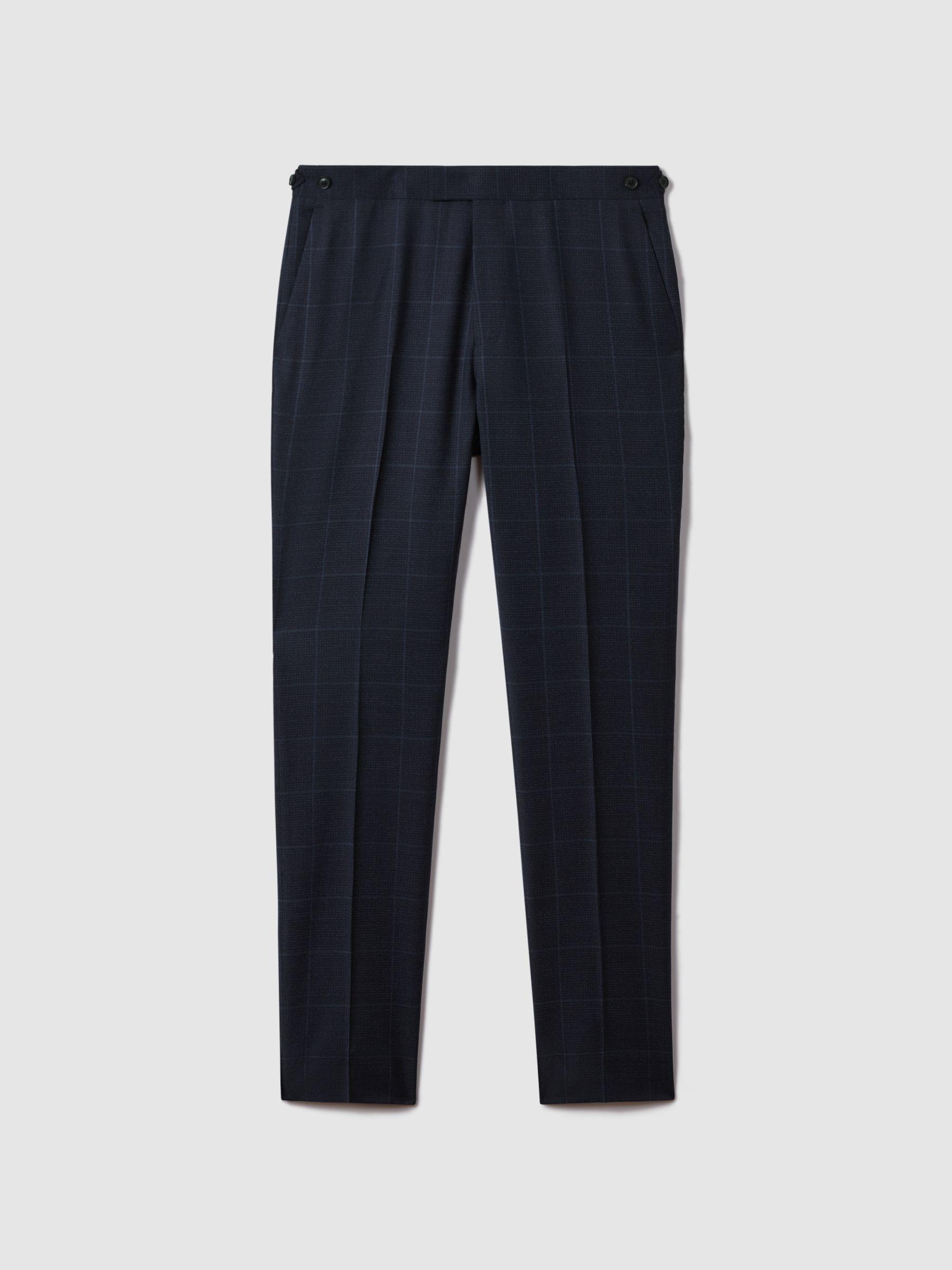 Klink Navy Wool Check Adjuster Slim Fit Trousers