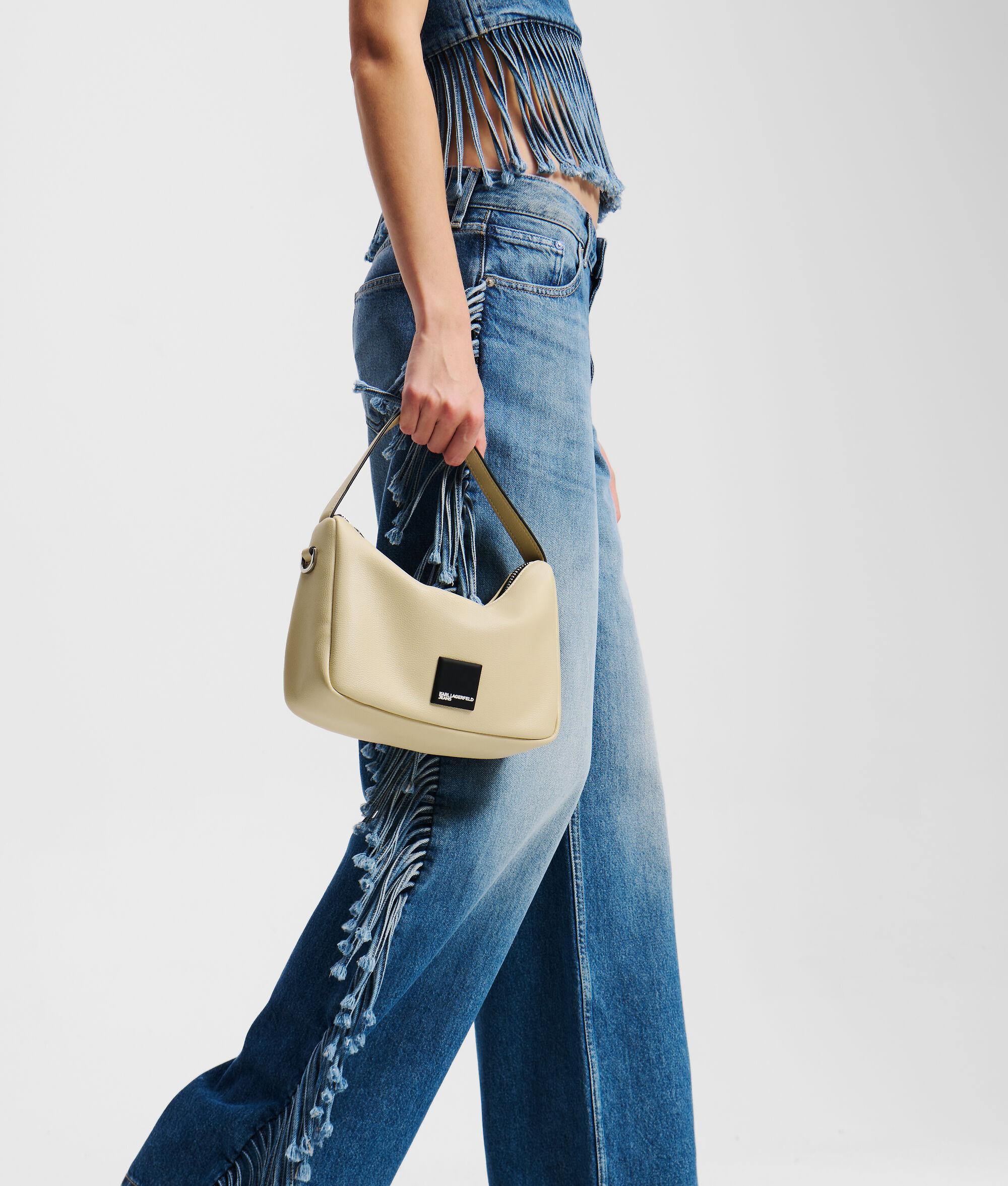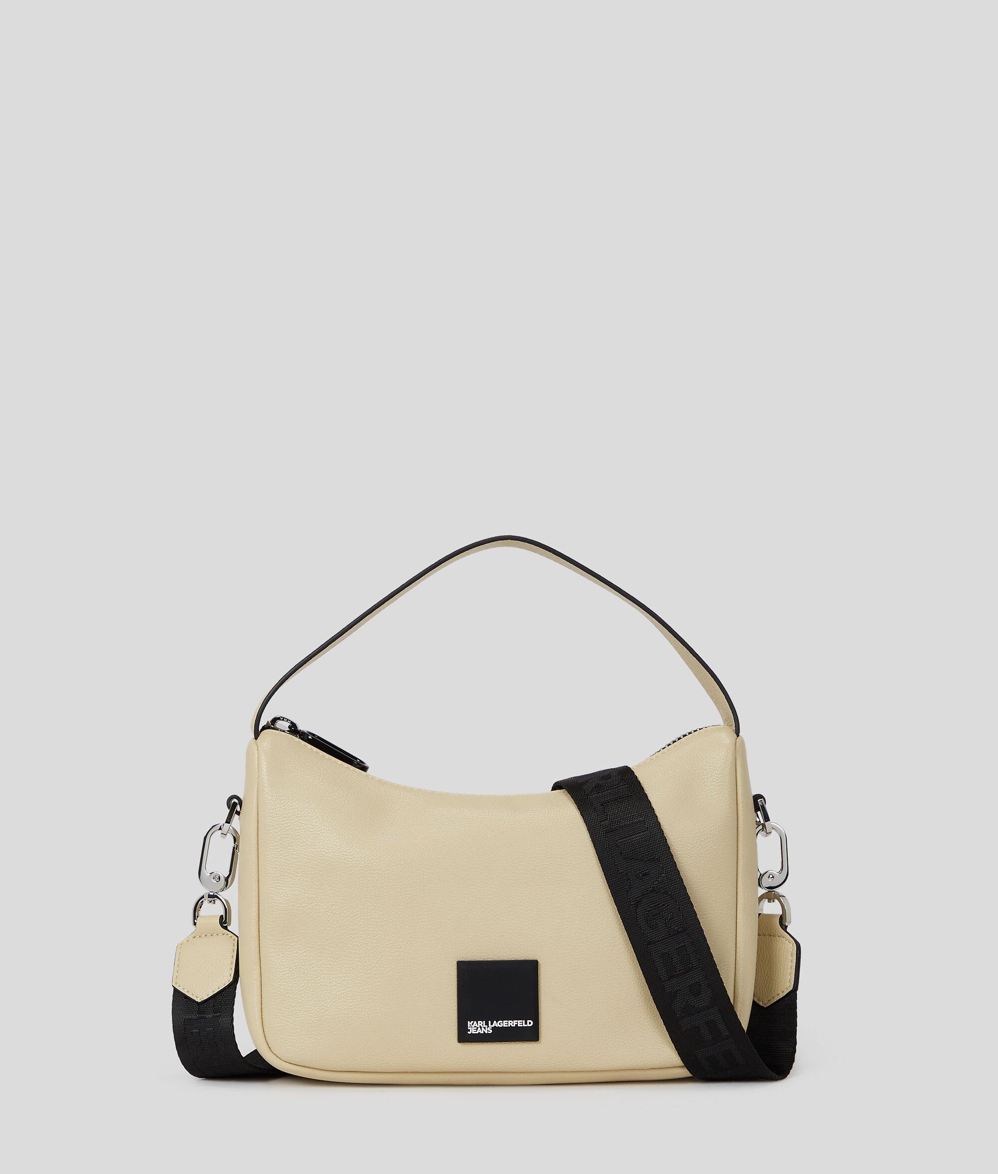 Blending style and on-the-go functionality, this mini hobo bag features a zip-top opening and a contrasting pull detail. The structured handle and adjustable strap offer versatile carrying options, while the bold KARL LAGERFELD JEANS logo adds a statement touch.