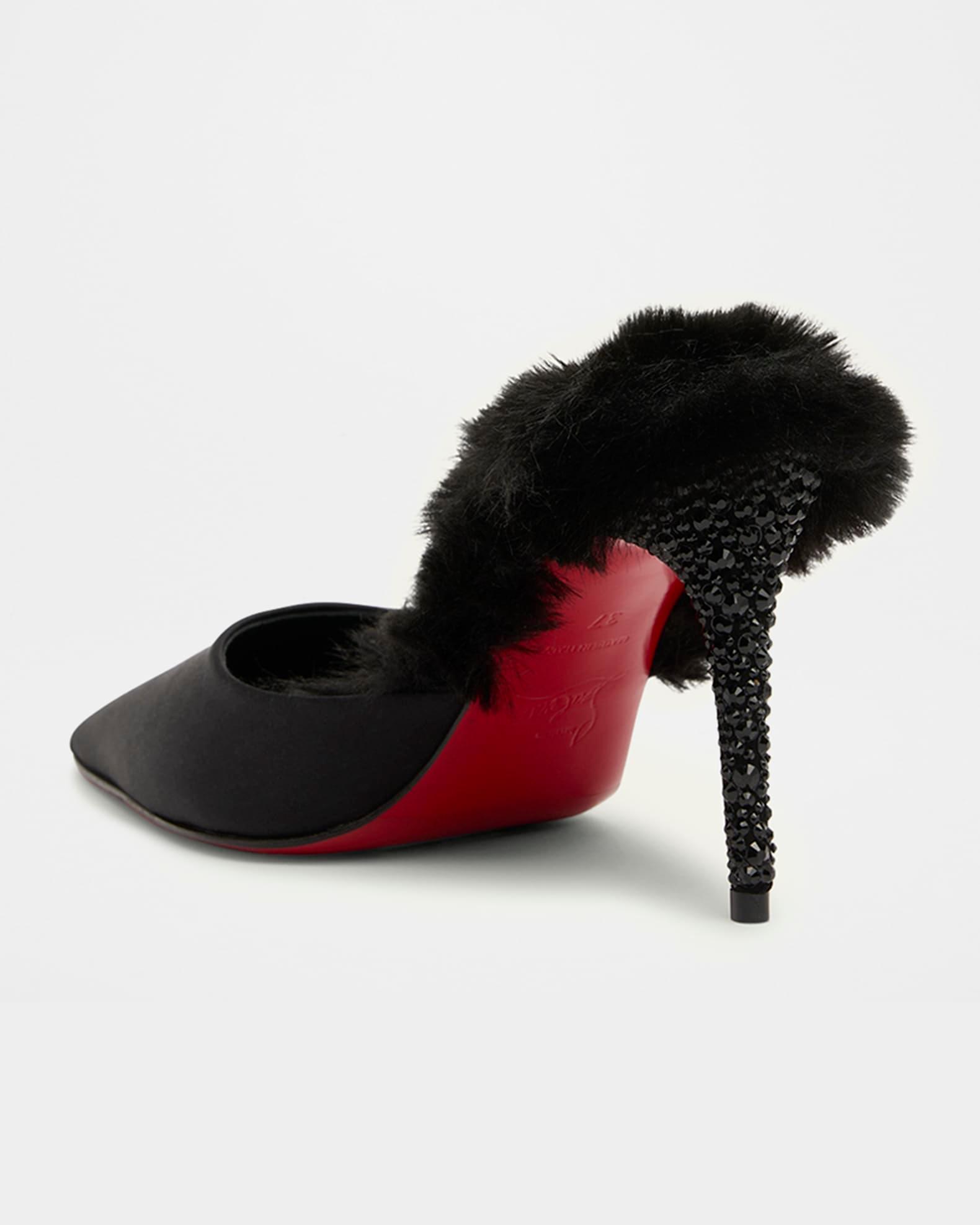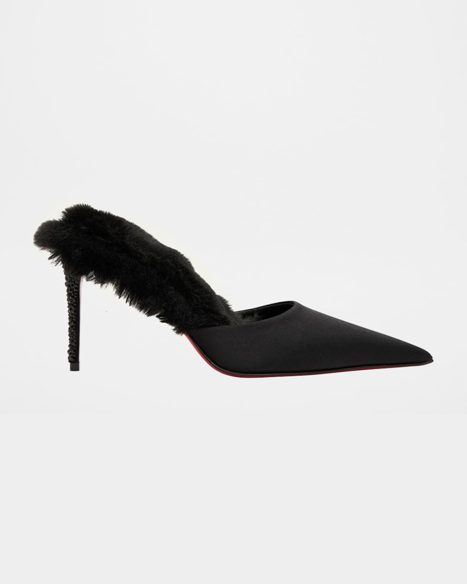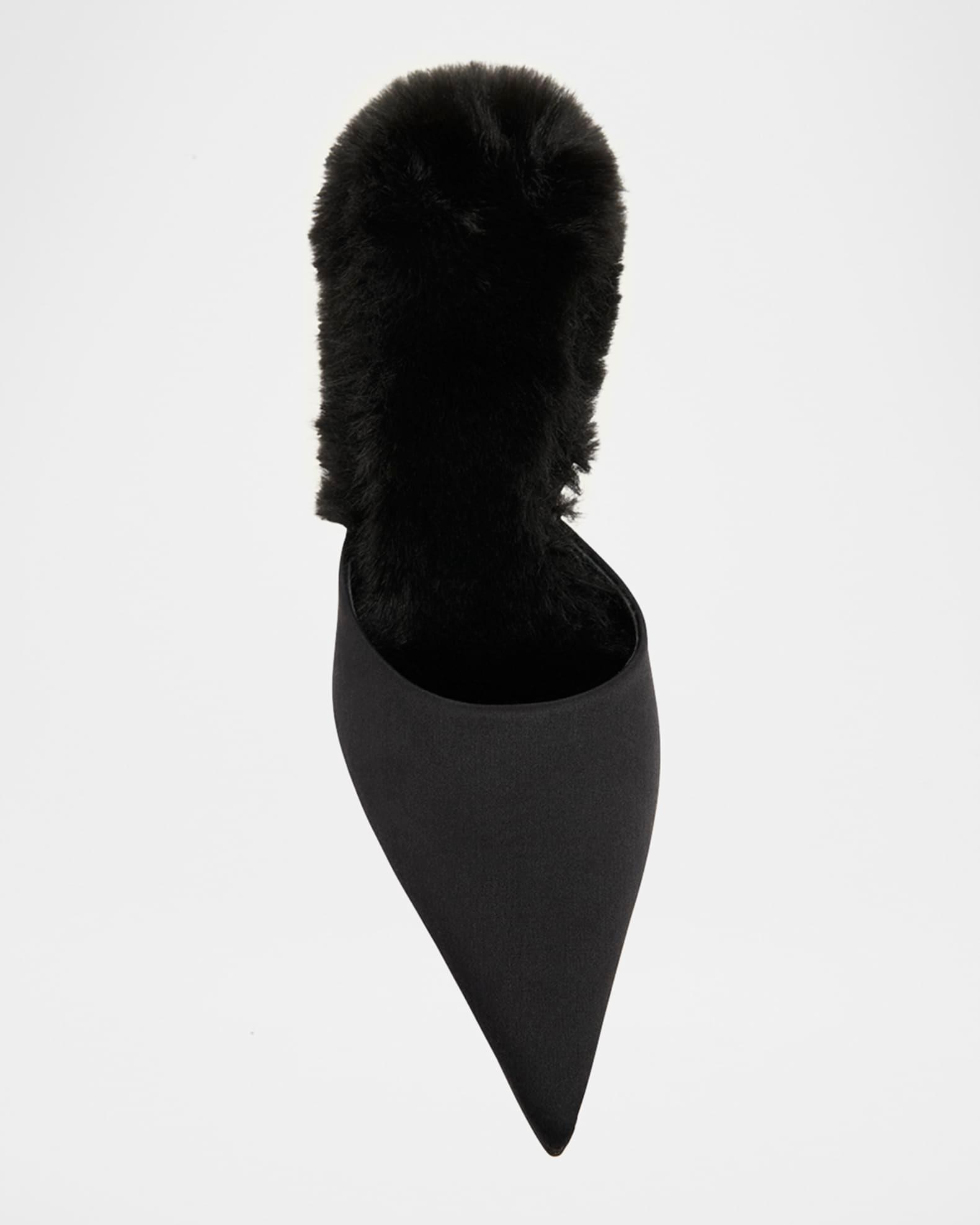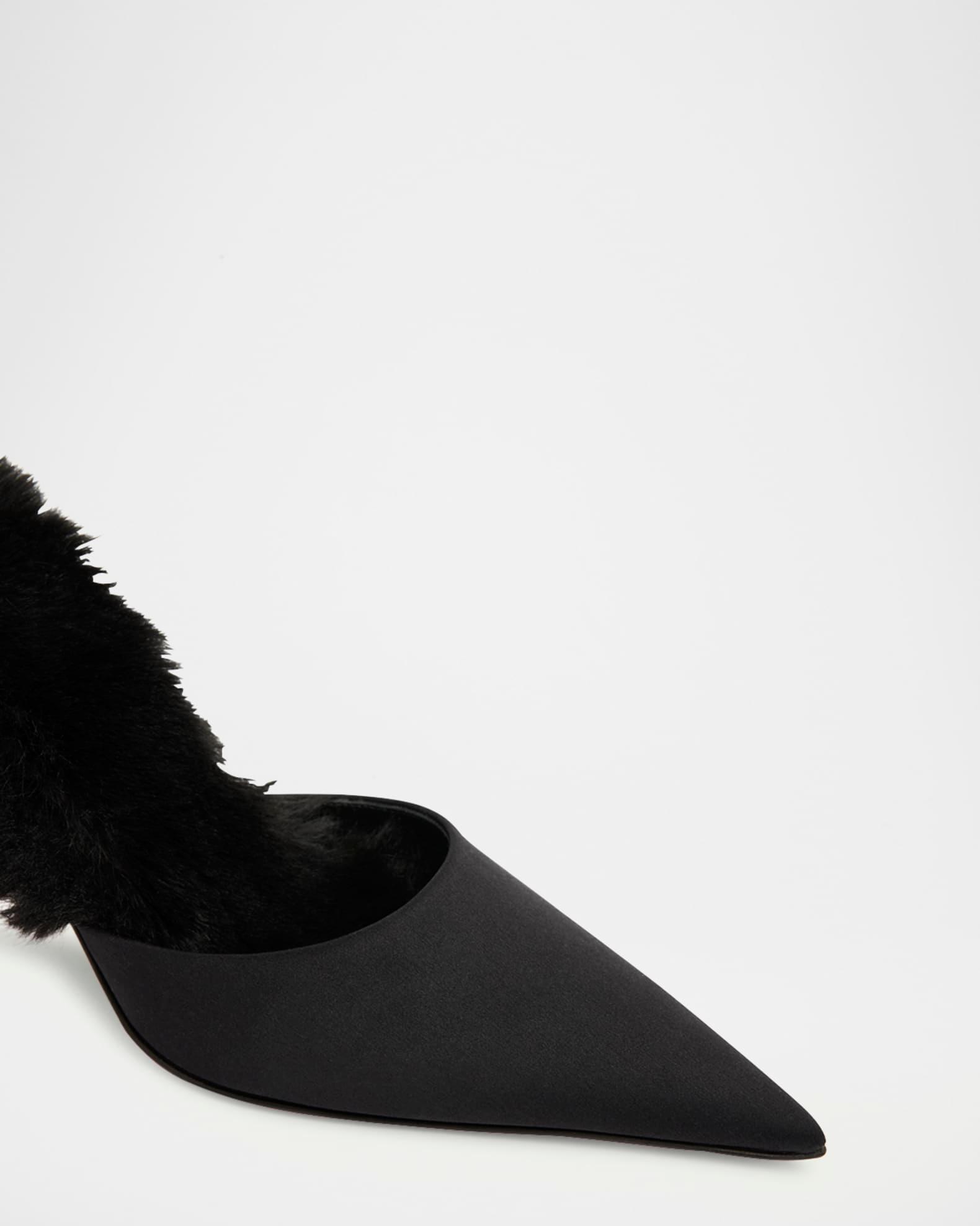 KM Faux Fur Satin Mule Pumps