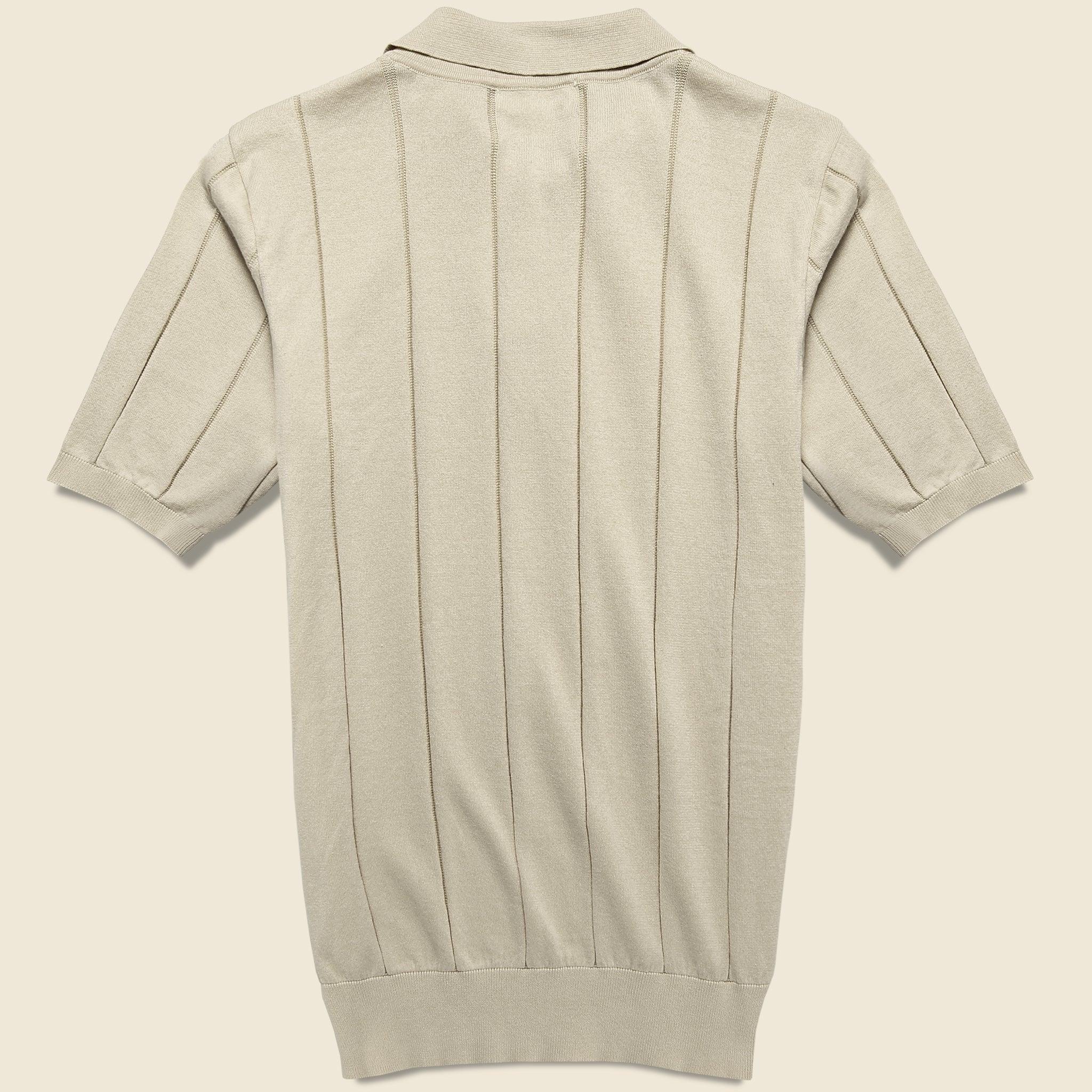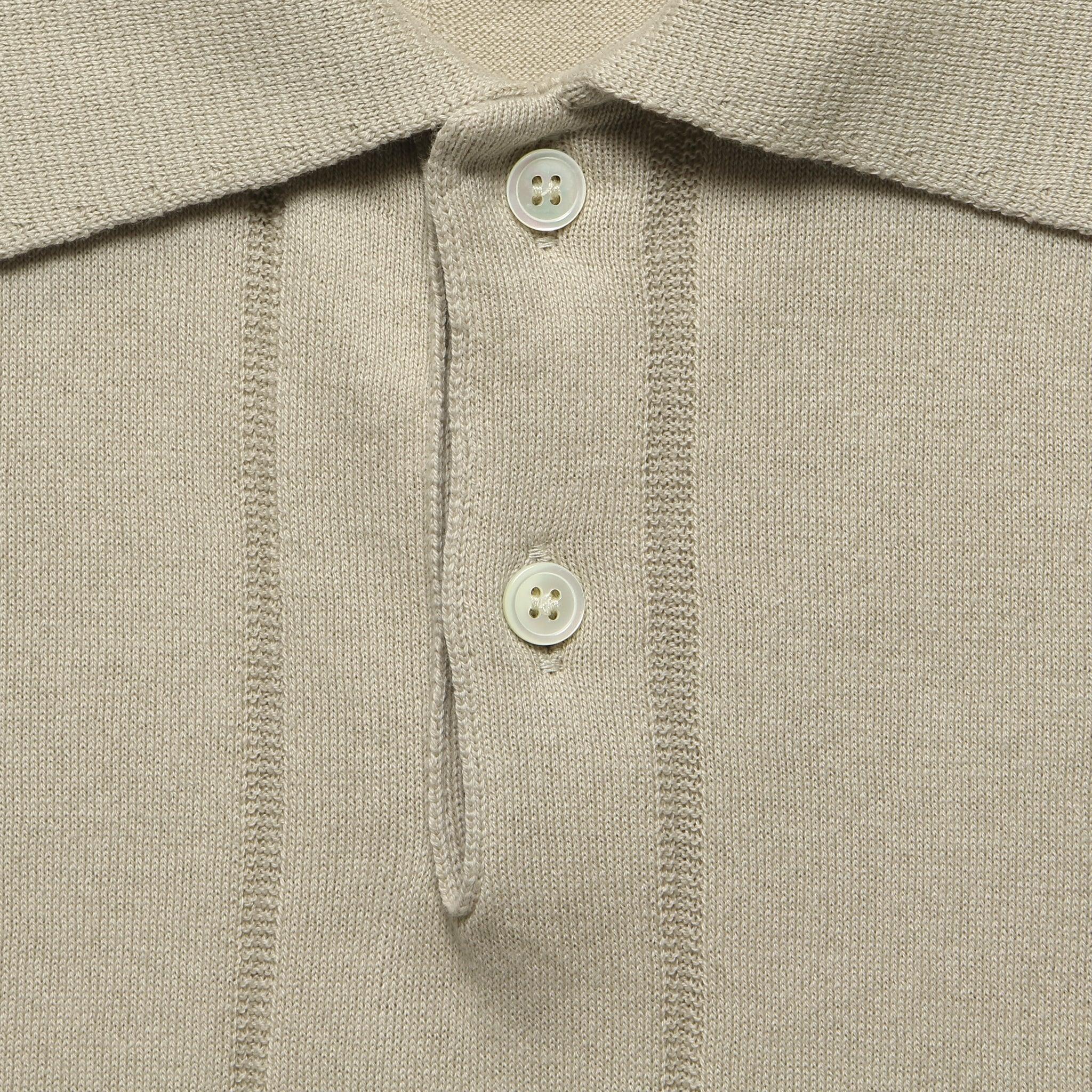 The Knit Jacobs Polo from Far Afield features a textured knit stripe in a classic midweight organic cotton to give it a genuine Ivy League prep style. Finished with a ribbed hem that sits just below the waist, it’s detailed with a simple spread collar and a two-button placket to further dive into the classic midcentury feel. Midcentury-style polo Soft, midweight cotton Knit striped pattern Spread collar Two-button placket Slim cut through the sleeves that fall just above the elbow Straight hem that fits a little slimmer around the waist Slim fit that runs narrow through the chest We recommend taking your normal size for a slim fit or taking one size up for a more relaxed fit Materials: 100% organic cotton The following measurements are for size Medium: Chest: 38” | Shoulder: 16" | Sleeve: 18 ½” |Length: 26”