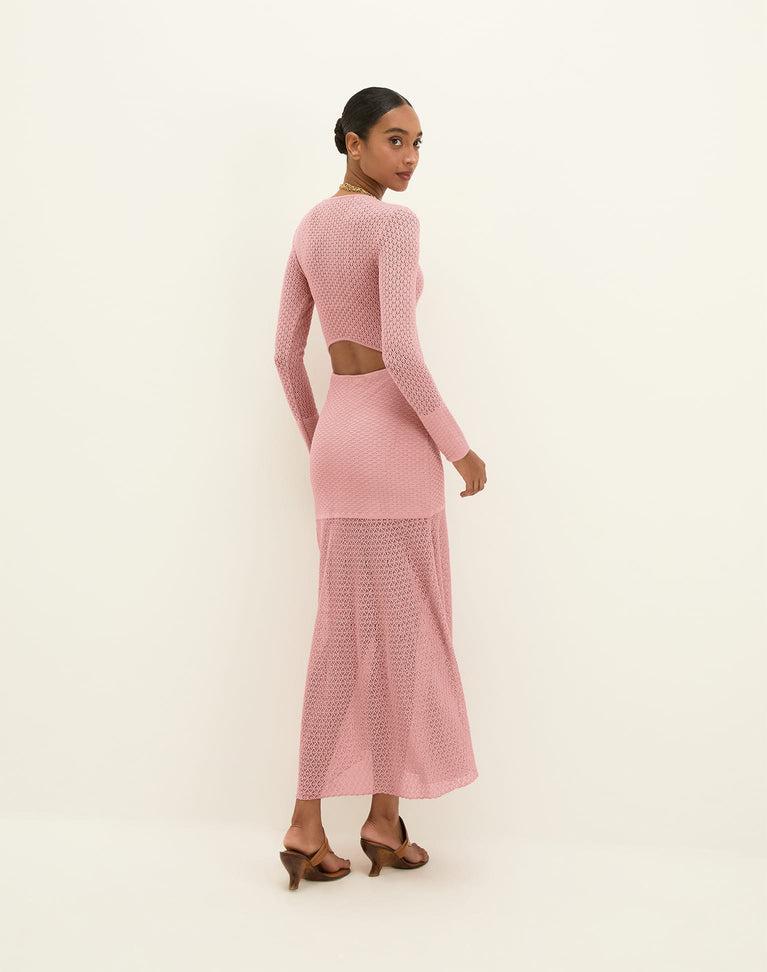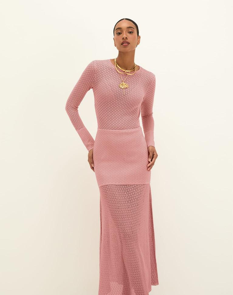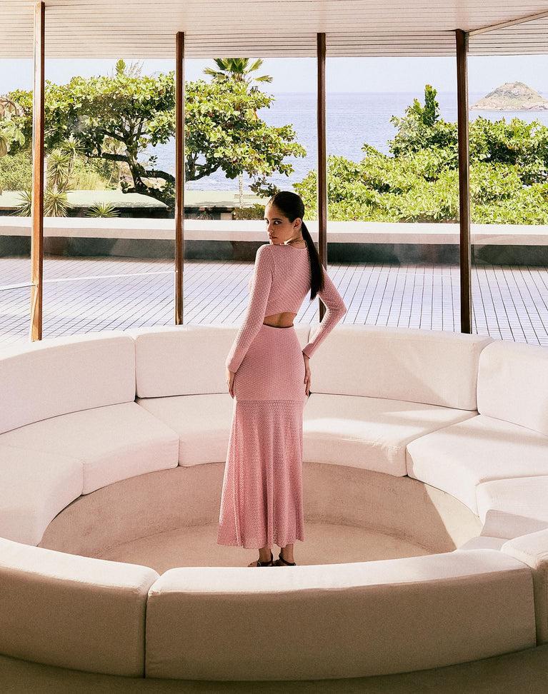 The ViX Knit Liz Long Dress is a sleeveless maxi with a round neckline and a partially flared skirt. The back offers full coverage with a subtle cutout detail at the lower back, adding a touch of unexpected allure. Style the Liz Long Dress with heels and ViX accessories for a resort-ready look. Features: Maxi dress Rou