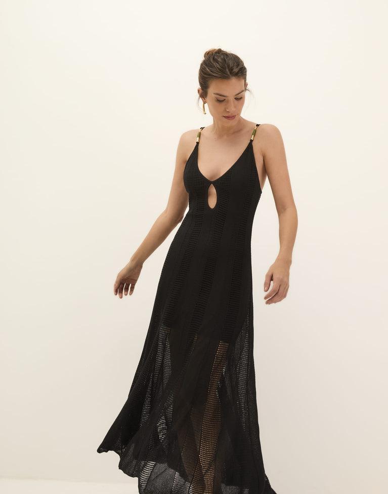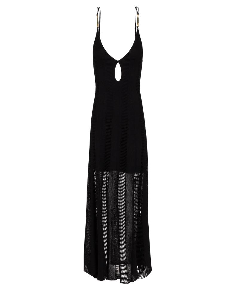 The ViX Knit Micah Long Dress is a sleeveless maxi with a scoop neckline and adjustable dual shoulder straps, accented with gold-plated details wrapped in waxed thread. A front keyhole adds a touch of flair, while the flowing skirt creates effortless movement. Style the Micah Long Dress with heels and ViX accessories f