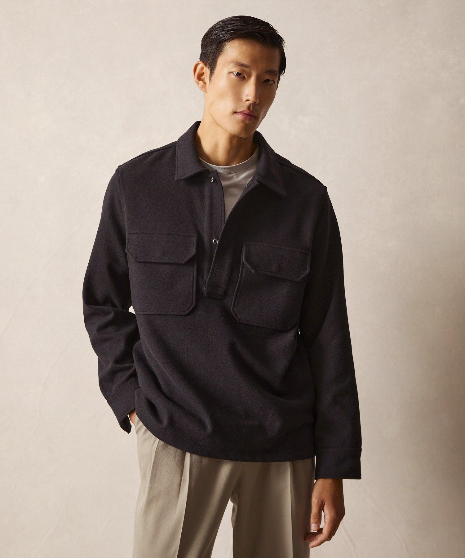 td {border: 1px solid #cccccc;}br {mso-data-placement:same-cell;}This easy popover combines some of the things Todd loves most: a comfortable but chic Italian fabric and utilitarian, military-inspired detailing. It's crafted from an incredibly soft and plush stretch cotton in custom, yarn-dyed colors. The silhouette is a riff on our classic overshirts: just relaxed enough for easy layering, but tailored enough to still work all on its own, too. It features a half-placket with snaps and patch-and-flap chest pockets, as well as details inspired by classic woven shirting single-needle topstitching, a shirt tail hem, and back yoke. 59% Polyester, 40% Cotton 1% Elastane ; Half-Placket with Snaps ; Two Flap Chest Pockets with Hidden Snaps ; Hidden Snap Cuffs ; Back Yoke ; Single-Needle Construction ; Made in Italy ; Hand wash cold. Do not machine wash (even if your machine has a "Hand Wash" setting). Do not bleach, do not tumble dry. Lay flat to dry. Cool iron if needed. ; Style KN3950568;