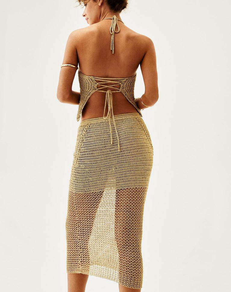 The ViX Knit Nikolas Top is a gorgeous strapless knit design made with our meticulously handcrafted crochet. It features a halter neckline, back ties, and a beautiful lace-up detail at the back. Style the Nikolas Top with a matching bottom for an elevated look or jeans and sandals for a more casual vacation-ready look.