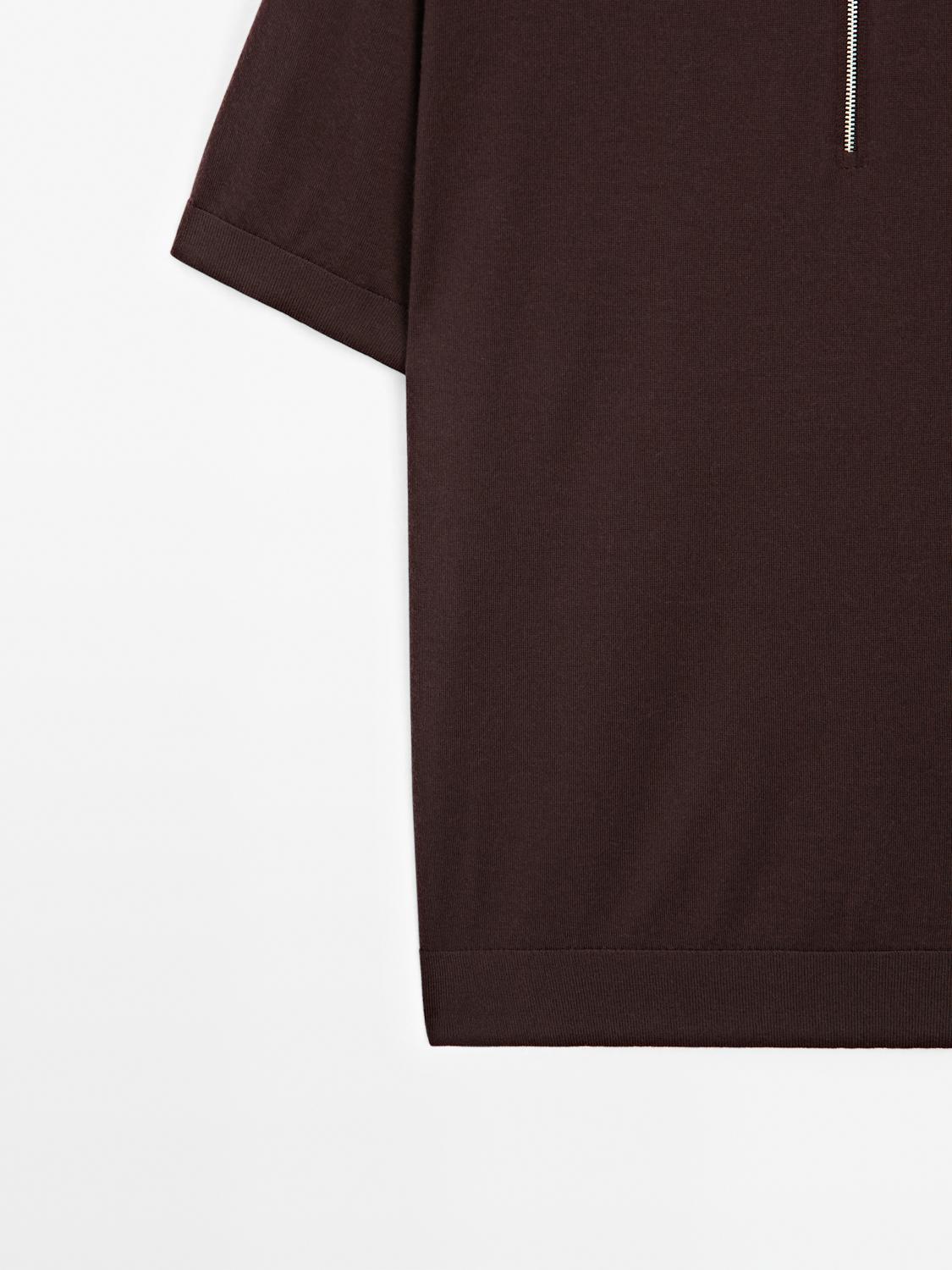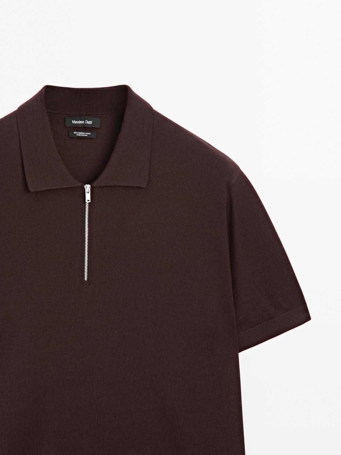 Knit polo shirt with zip collar