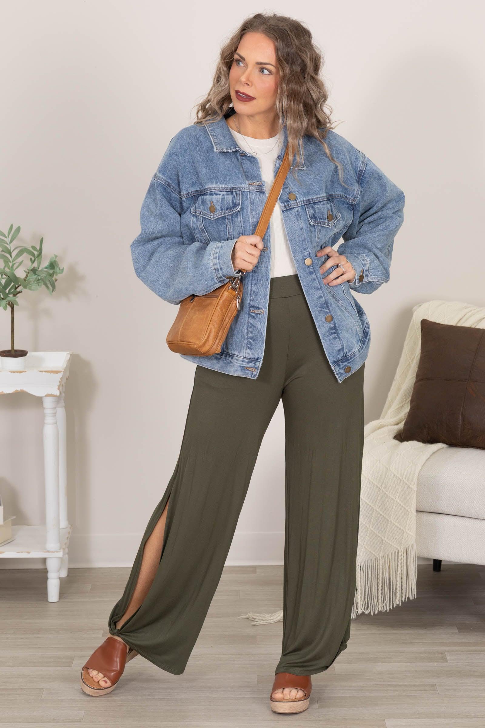 Product Details Colors: Black/ Olive Print: Solid Style: Ankle Tie Pants Brand: 7th Ray Material and Care 95% Rayon 5% Spandex Hand Wash Cold Hang Dry Size and Fit Small: Waist 24" Rise 11.5" Inseam 30.5" Medium: Waist 26" Rise 12" Inseam 30.5" Large: Waist 28" Rise 12.5" Inseam 30.5" 1X Large: Waist 32" Rise 13" Inseam 30.5" 2X Large: Waist 34" Rise 13.5" Inseam 30.5" 3X Large: Waist 36" Rise 14" Inseam 30.5" Erica is 5'7 and wearing a size small Kristen is 5'2 and wearing a size 1X Large
