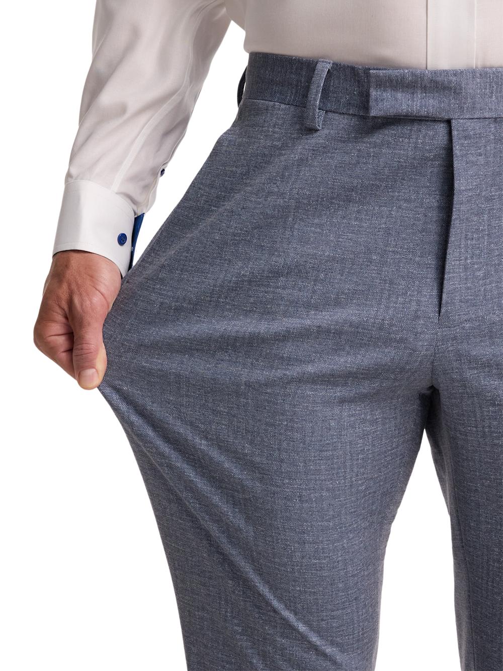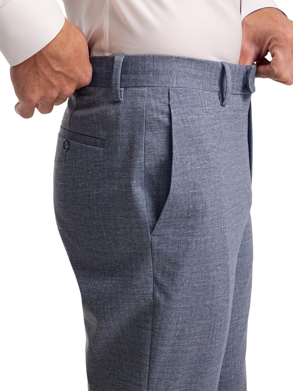 Features Flat Front, Unlined Tailored Fit Hemmed Bottoms Button Front Closure Front Quarter Top Stitch Pocket , Back Button Through Besom Pockets Wrinkle Resistant Content & Care 78% Polyester, 18% Viscose, 4% Spandex Machine Wash Warm With Like Colors; Only Non-chlorine Bleach If Needed. Tumble Dry Low, Warm Iron If Needed Imported Style# PMW001N