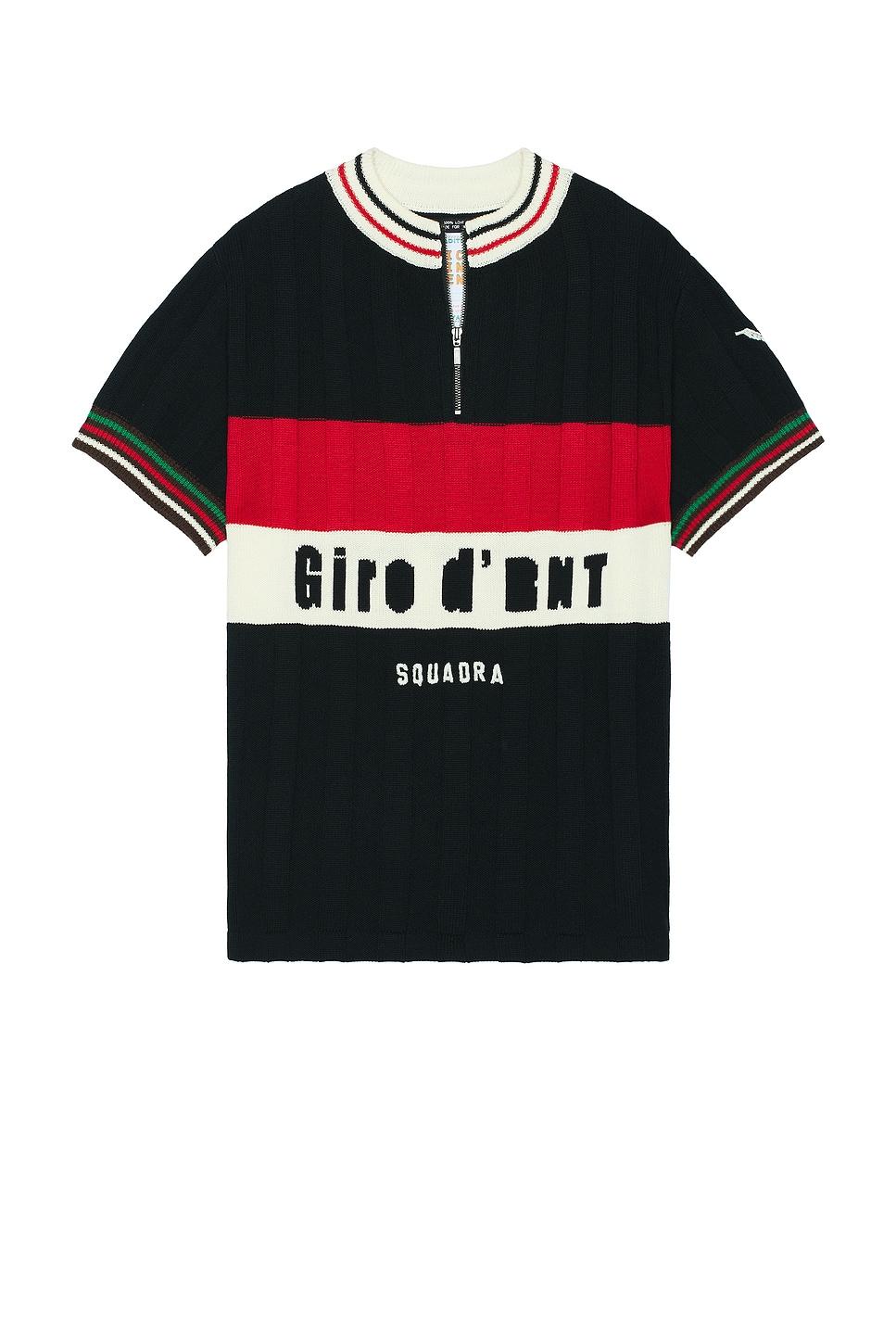 cycling jersey54% nylon, 20% polyester, 16% acrylic, 10% wool / Made in China / Dry clean only / Quarter zip closure / Midweight knit fabric / Our Style No. RTEF-MS24 / Manufacturer Style No. KN-CYJ / Model is wearing size 2.