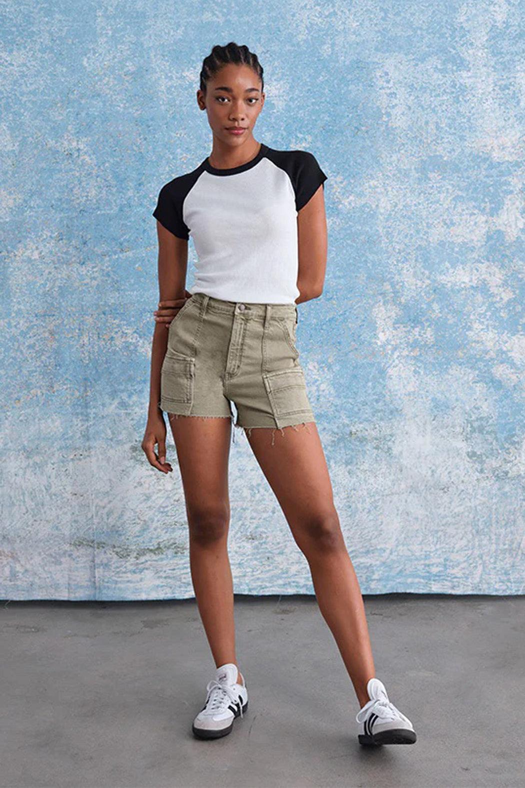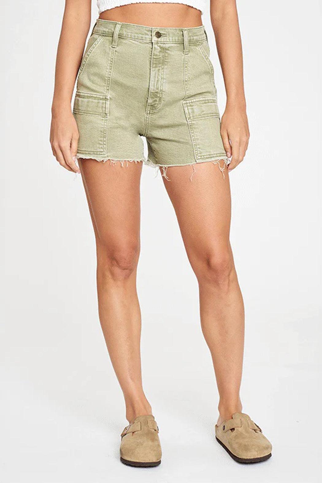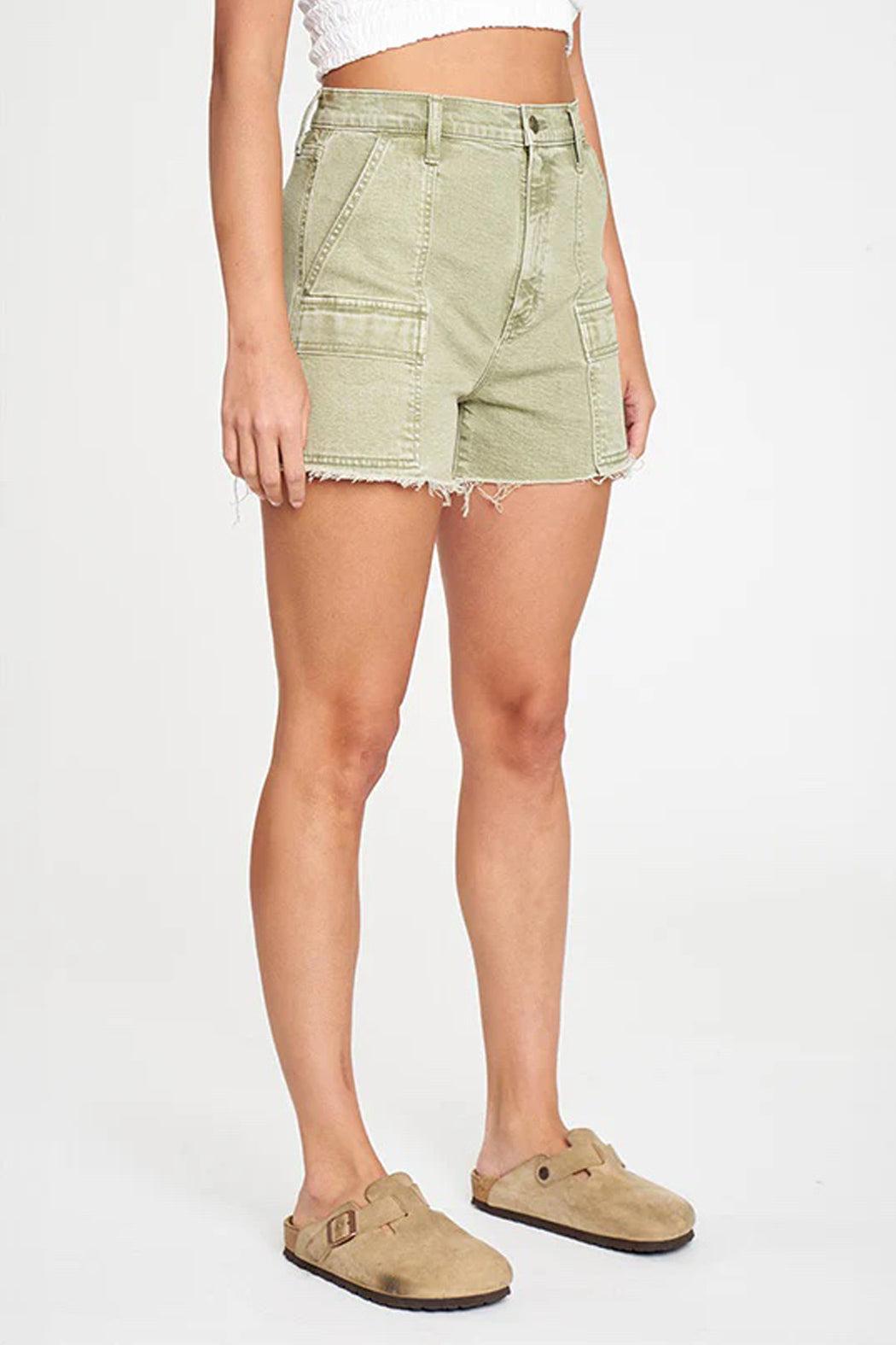 High waisted cargo short in washed matcha, raw hem, and belt loops. Pair with tees and tanks for a casual summer style. See more styles by Daze and how they can be styled on our instagram @lunaboutiquecanton
