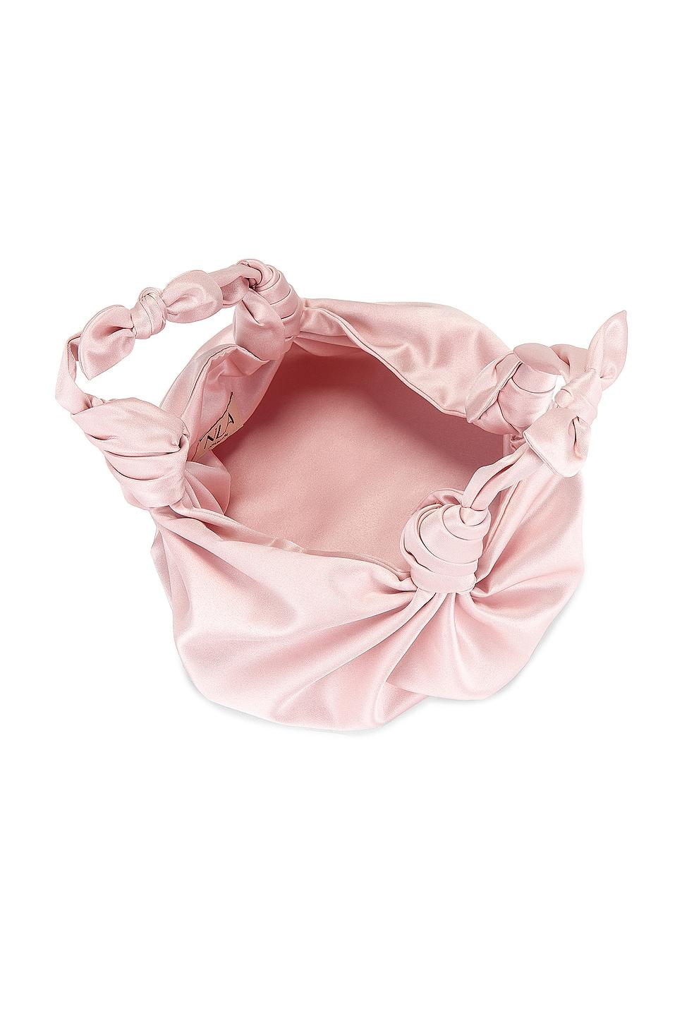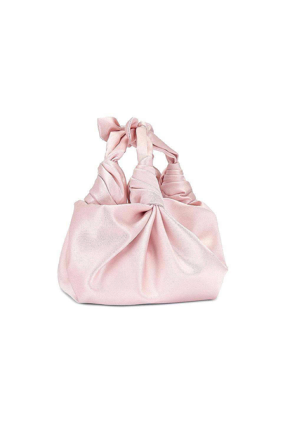 Satin exterior and interior. Made in USA. Top magnetic button closure. One main compartment. Knotted top handles. Measures approx 11" W x 7" H x 2.25" DTop handle with a 3" drop. Revolve Style No. NLAR-WY4. Manufacturer Style No. NLA102BLSH.